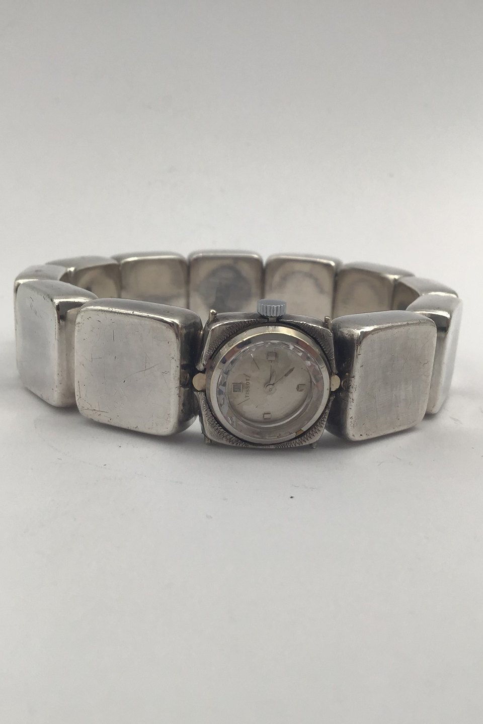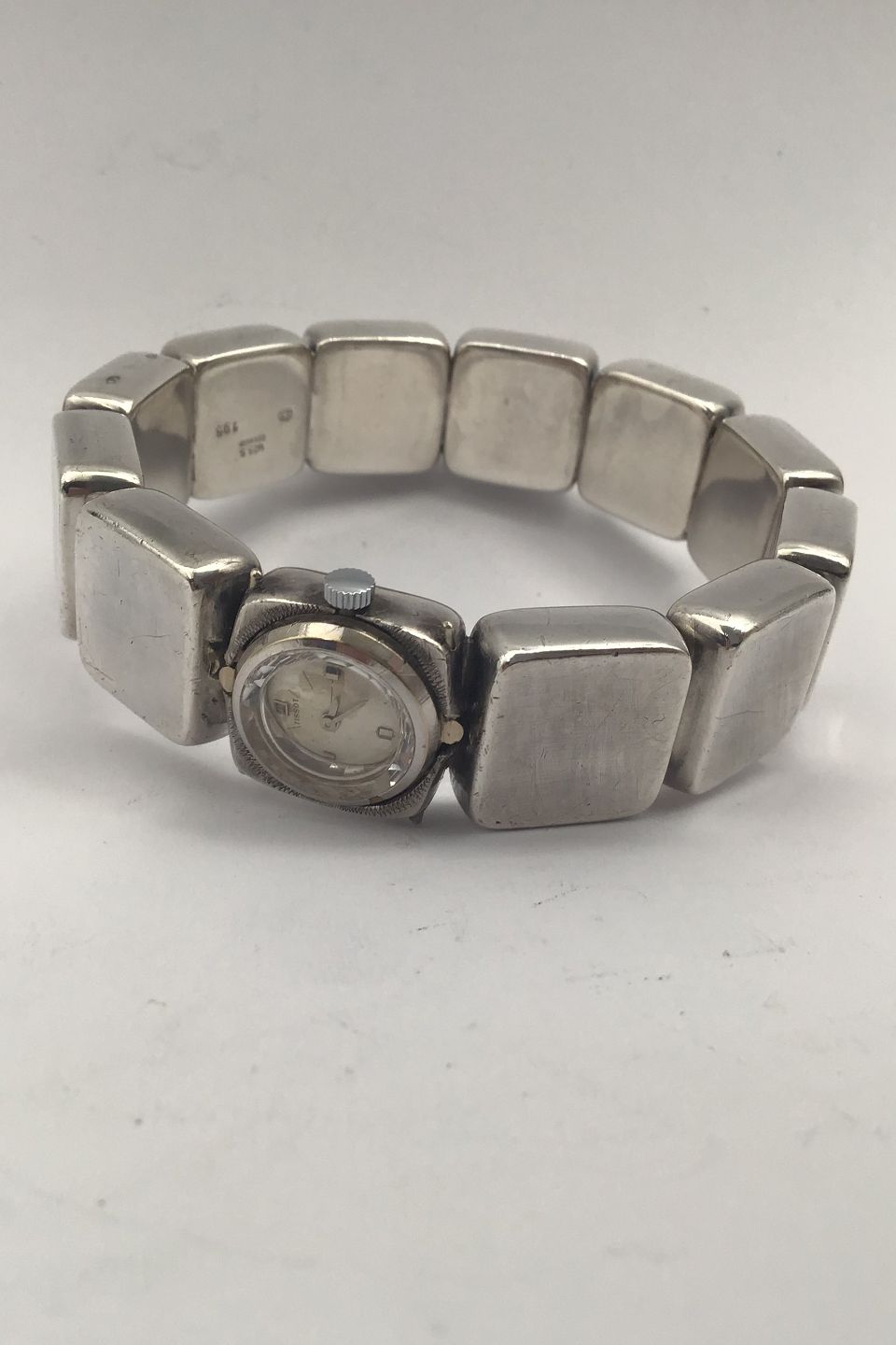Georg Jensen Sterling Silver Bracelet integreted watch No. 196 Astrid Fog Measures Inside Diam 6.4 cm Weight 93.7 gr(3.31 oz)