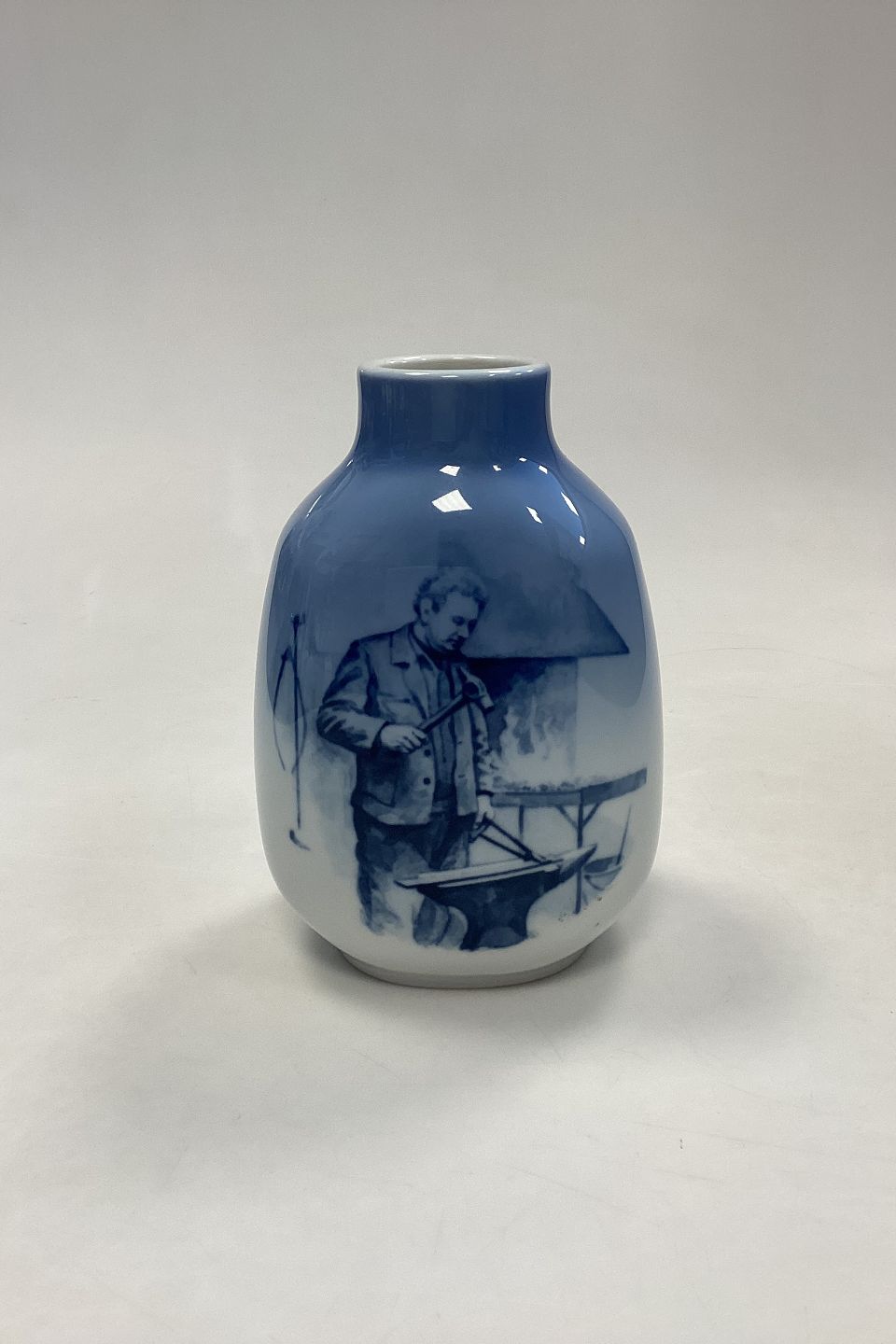 Royal Copenhagen Vase Danish Handcraft - Blacksmith at Anvil No. 299005/5582. Measures 17.5 cm / 6.88 in. 1.st Quality.