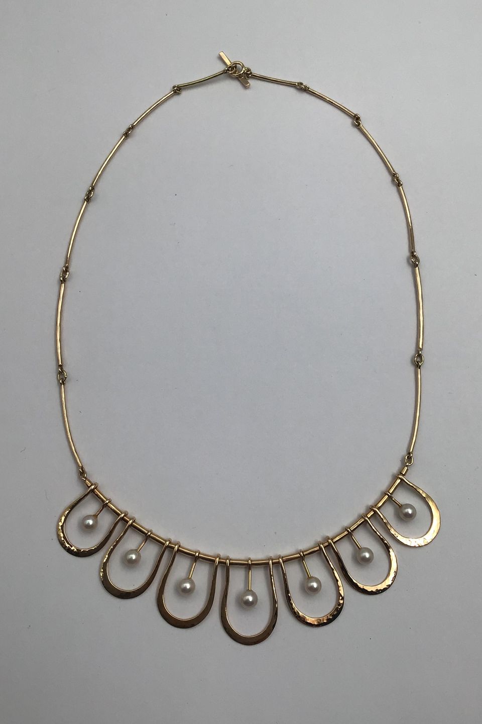 Bent Gabrielsen 14 ct Gold Necklace with Pearls Measures 44 cm (17.32 inch) Weight 21 gr (0.74 oz)