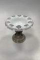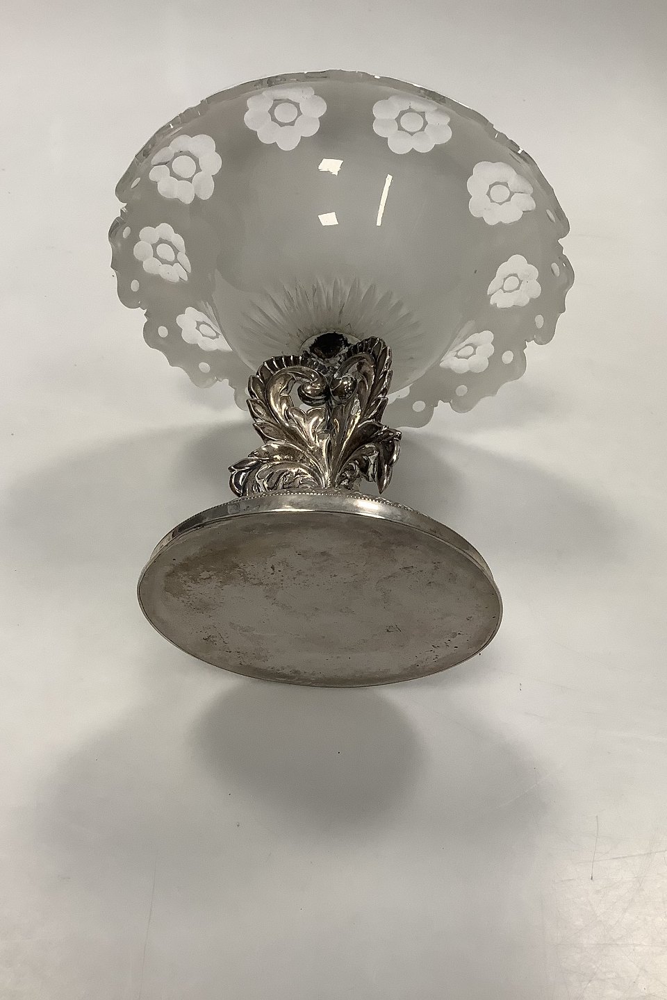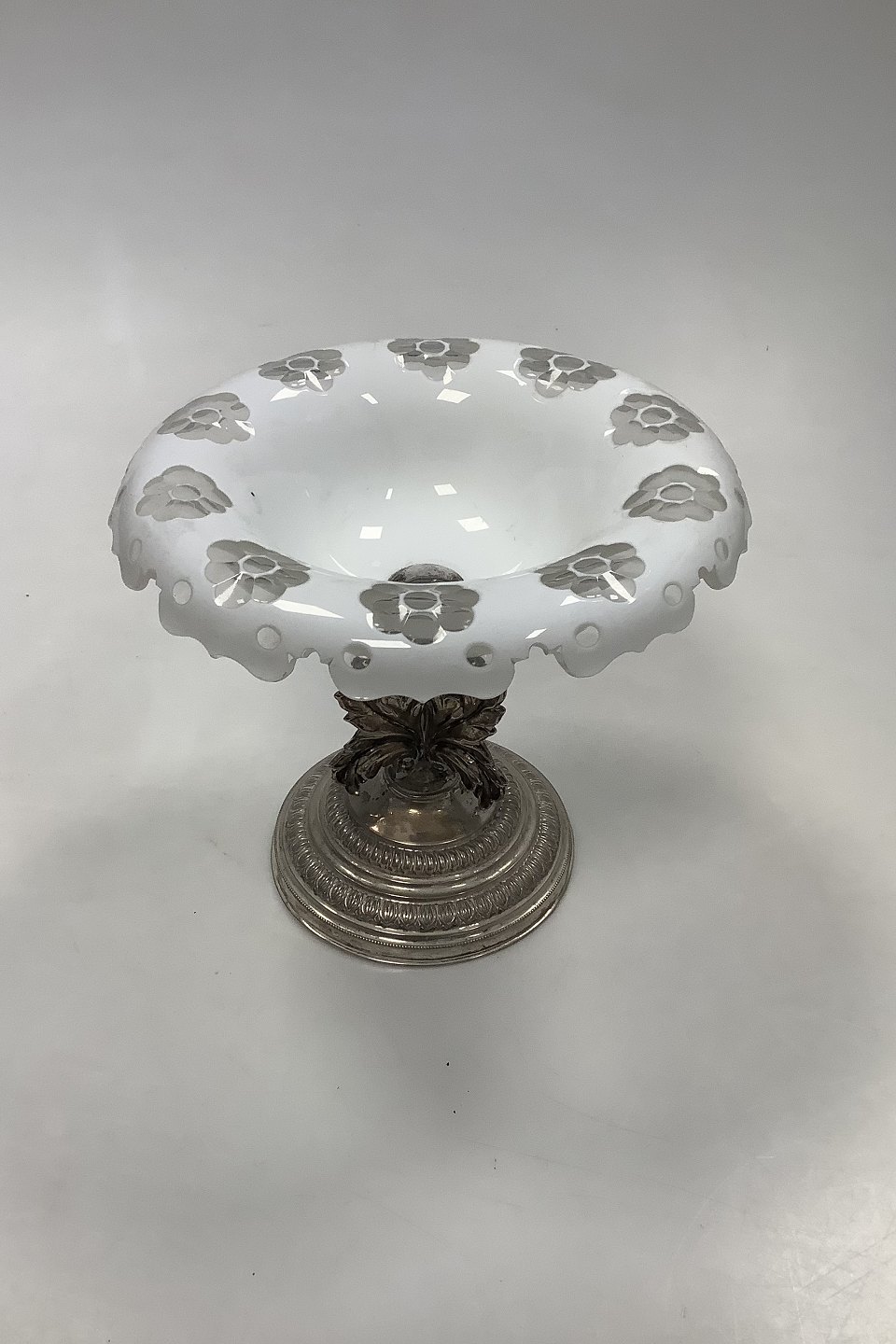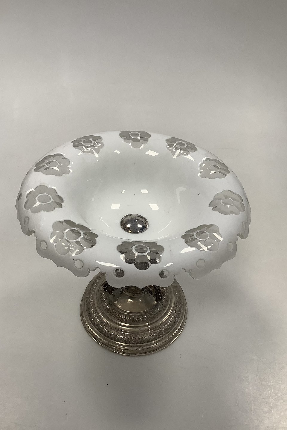 Antique Glass pedistal bowl with silver bottom in clear and white glass