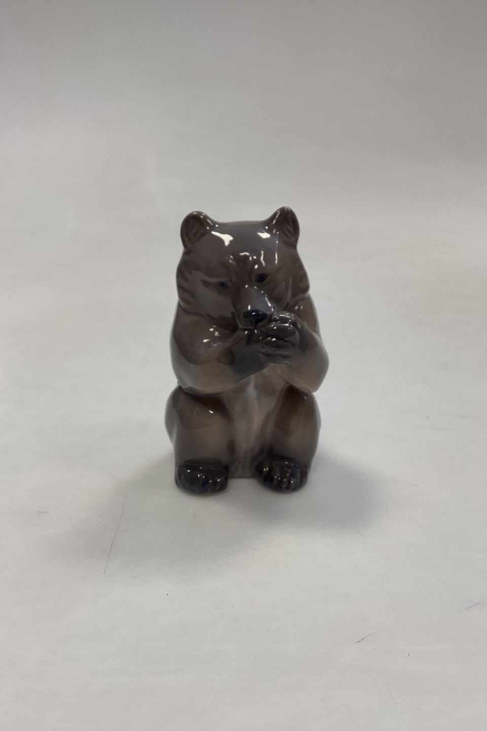 Royal Copenhagen Figurine of Bear Cub No. 3014. Designed by Knud Kyhn. Measures 9 cm / 3.54 in. Shades of gray.