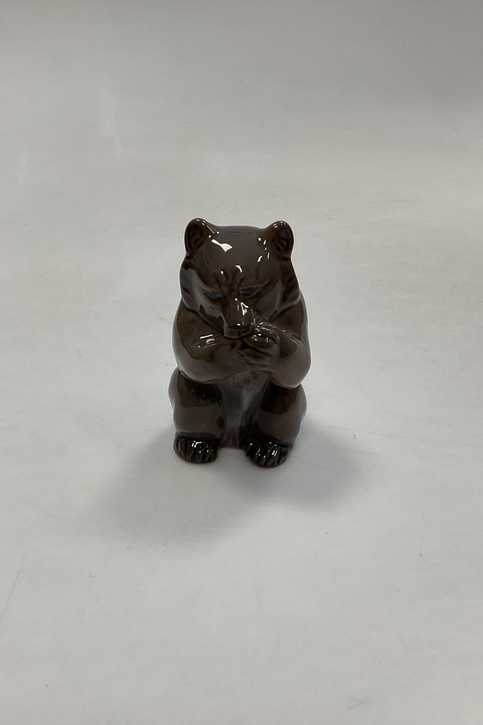 Royal Copenhagen Figurine of Bear Cub No. 3014. Designed by Knud Kyhn. Measures 9 cm / 3.54 in. Greyish brown shades.