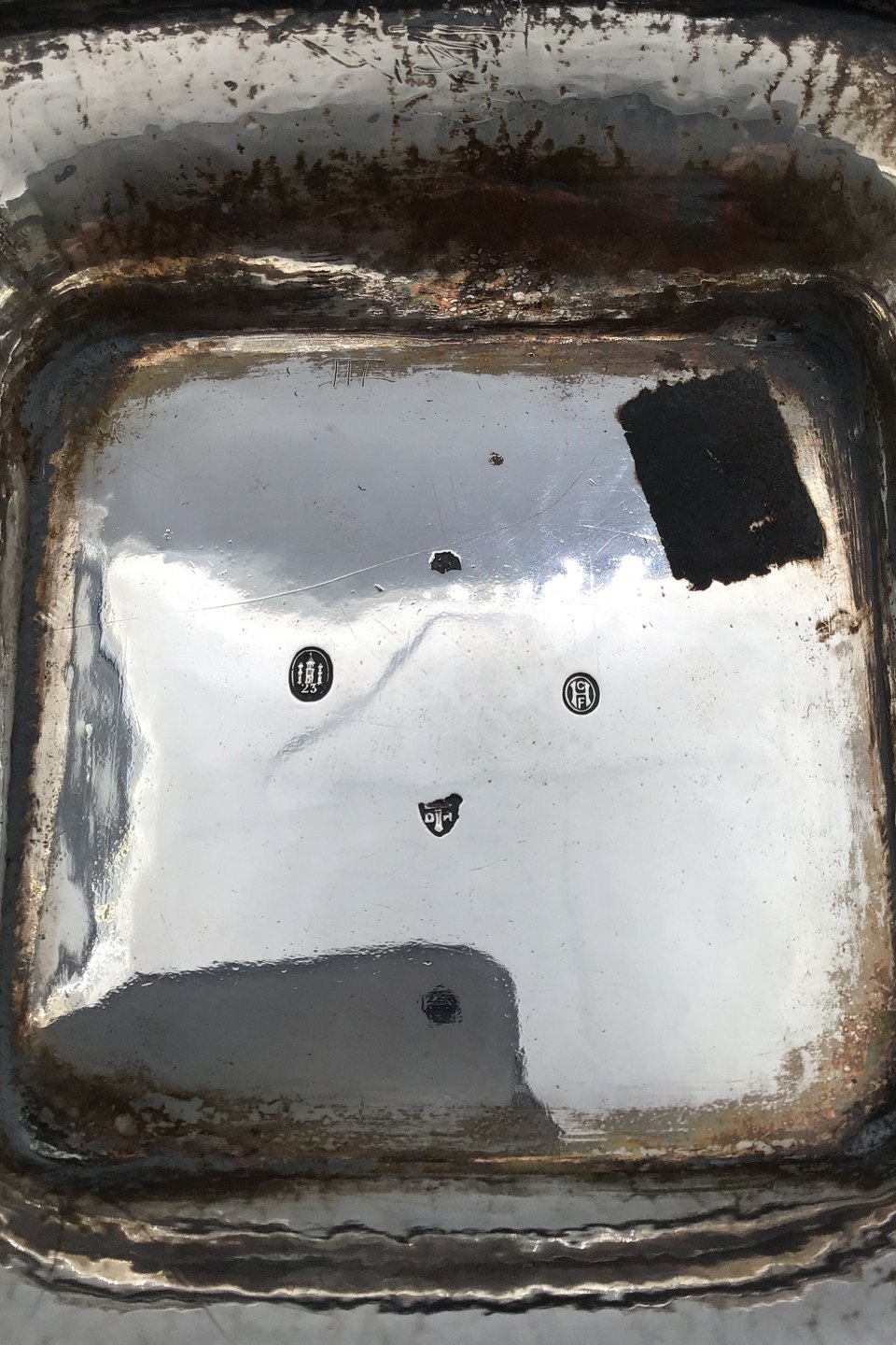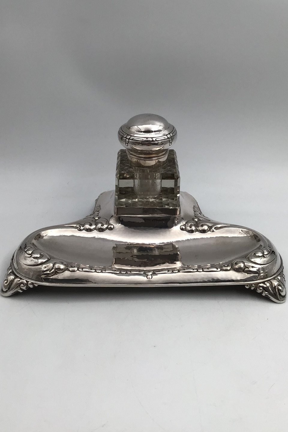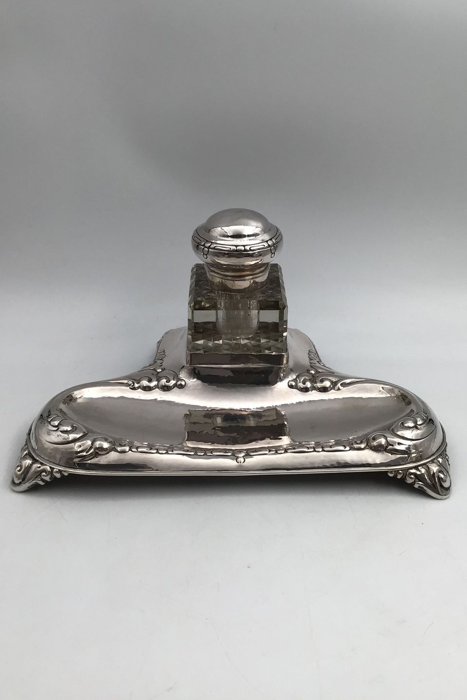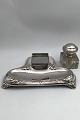 Dansk Arbejde Silver Pen Tray and Glas Inkwell (1923) Tray Measures 24.5 cm x 17.8 cm(9.64 inch x 7.0 inch) Inkwell 6.3 cm x 6.3 cm(2.48 inch x 2.48 inch) H 9 cm (3.54 inch) Combined weight incl glas Inkwell 655 gr (23.10 oz)
