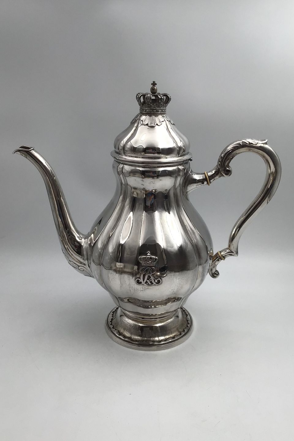 A. Michelsen Sterling Silver Coffee Pot (1934) Measures H 29 cm (11.41 inch) Weight 1040 gr (36.68 oz ) Monogram of Danish King Christian X