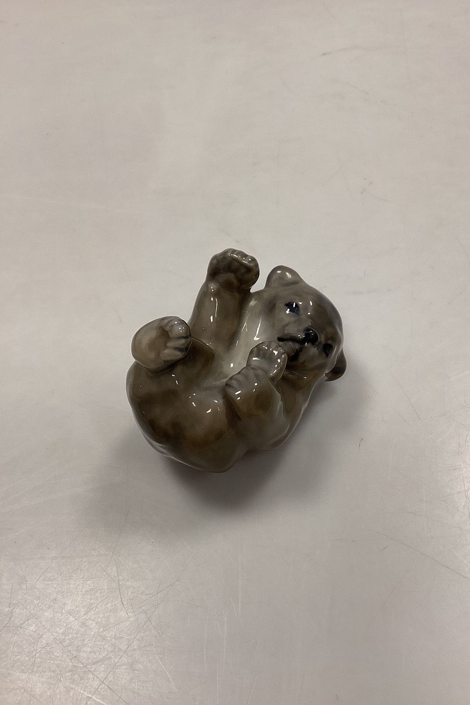 Royal Copenhagen Figurine Bear Cub No. 1124. Designed by Knud Kyhn. Greyish yellow color. 1st Quality.