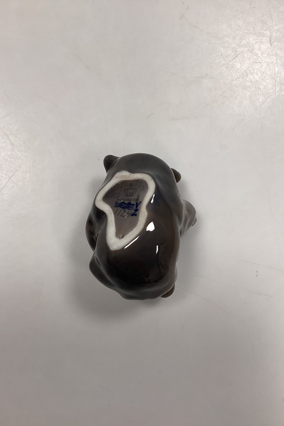 Royal Copenhagen Figurine Bear Cub No. 1124. Designed by Knud Kyhn. Dark greyish-brown colour. 1st Quality.