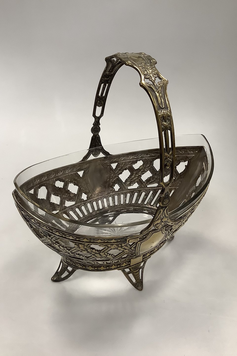 Brass Bowl with handle and glass insert