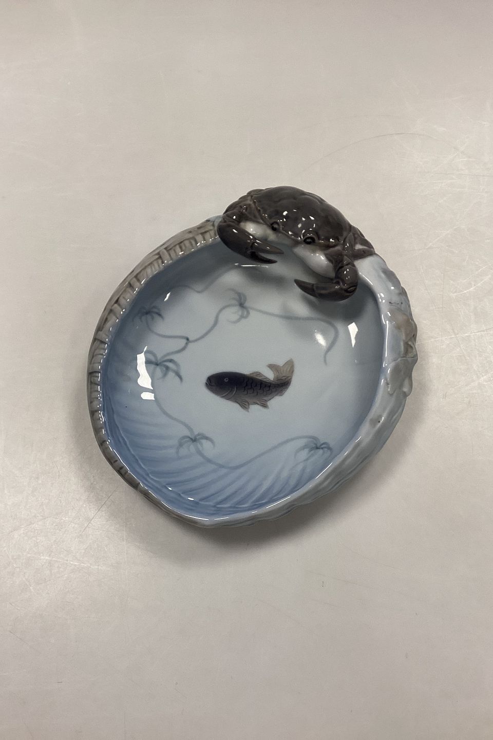 Royal Copenhagen Art Nouveau Bowl with Crab No. 2465. Measures approx. 25 cm x 20 cm (9 27/32 in. x 7 7/8 in.) 1st Quality