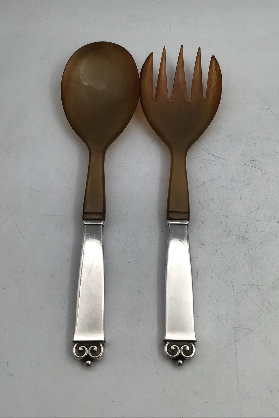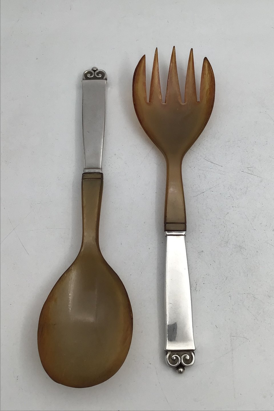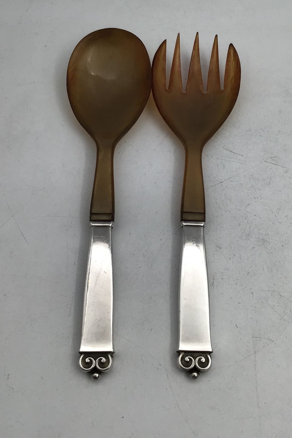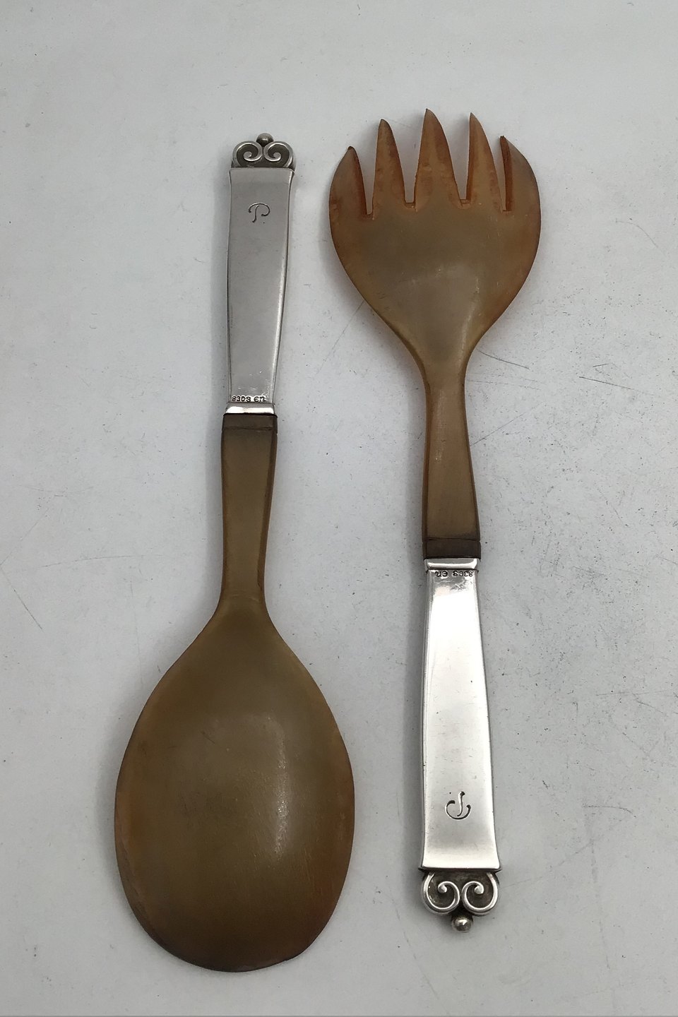 Evald Nielsen Silver No. 28 Salad Servers (Horn) Measures 20.5 cm (8.07 inch) (Engraved)
