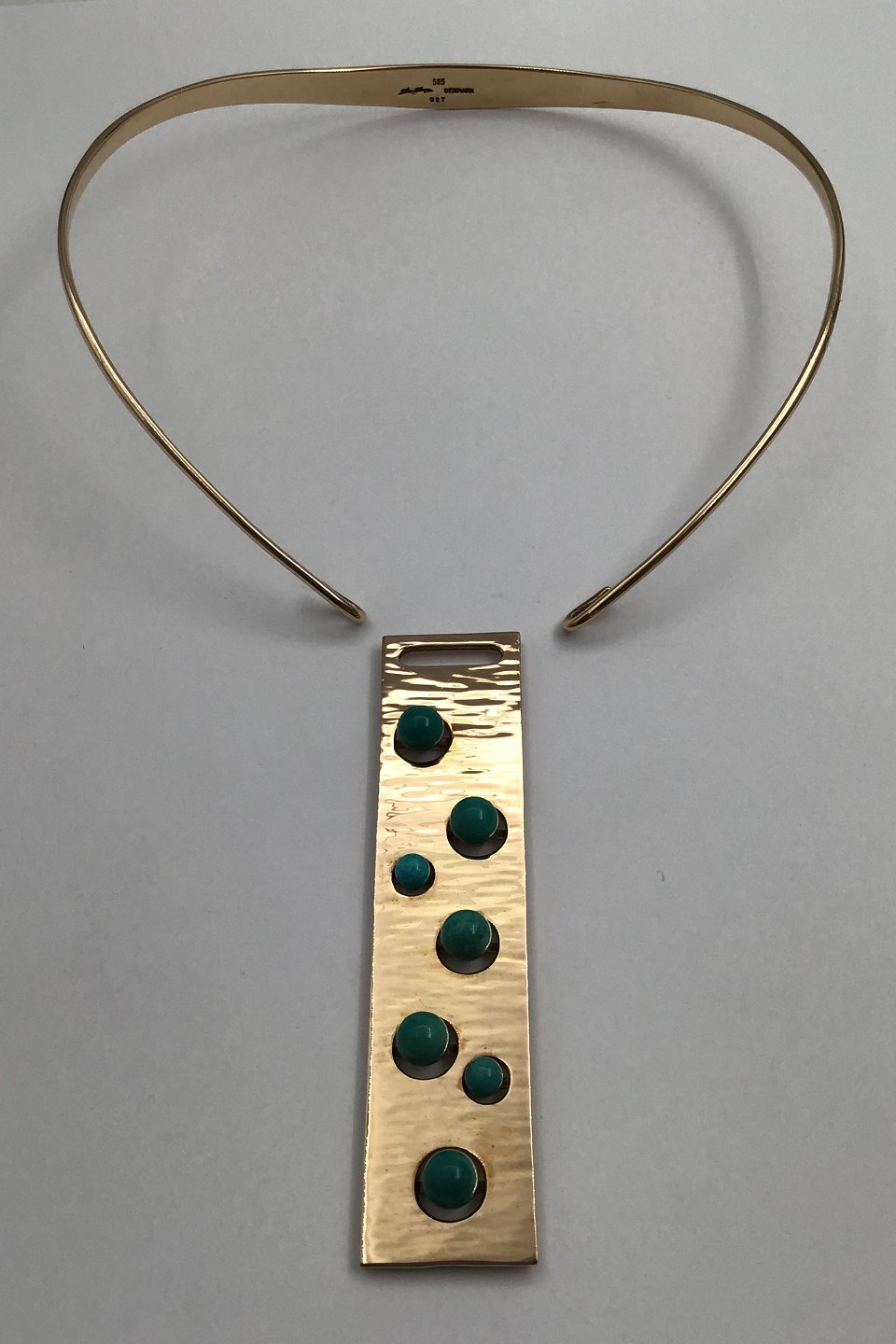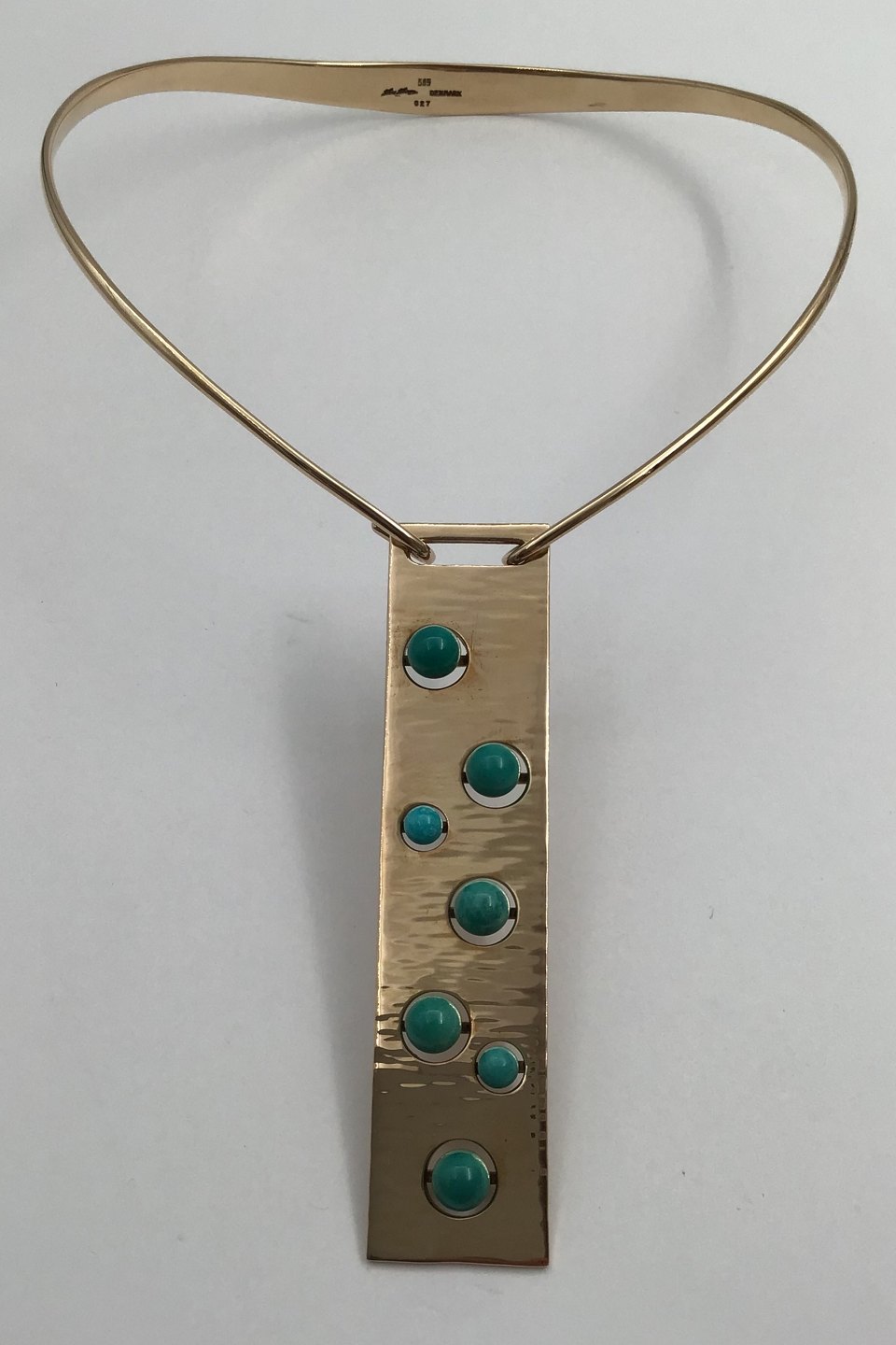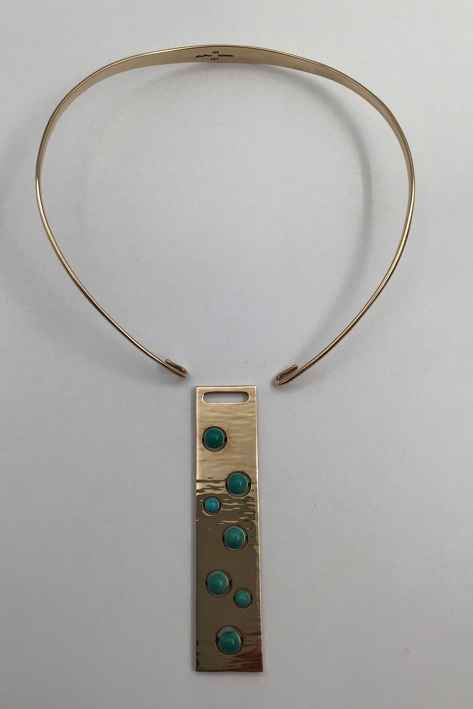 Hans Hansen 14K Gold Neckring with Turquoise Pendant No. 027 Bent Gabrielsen