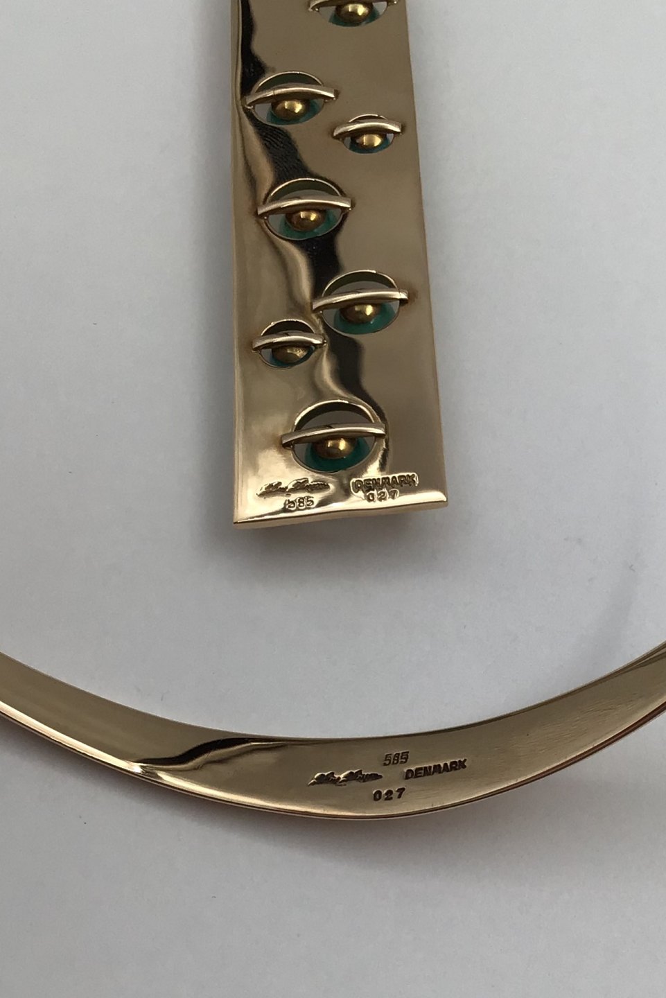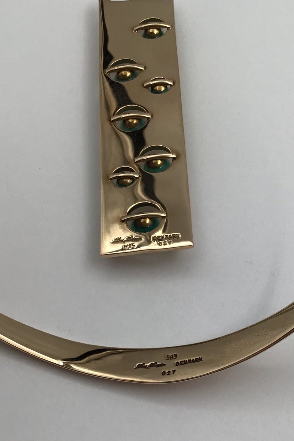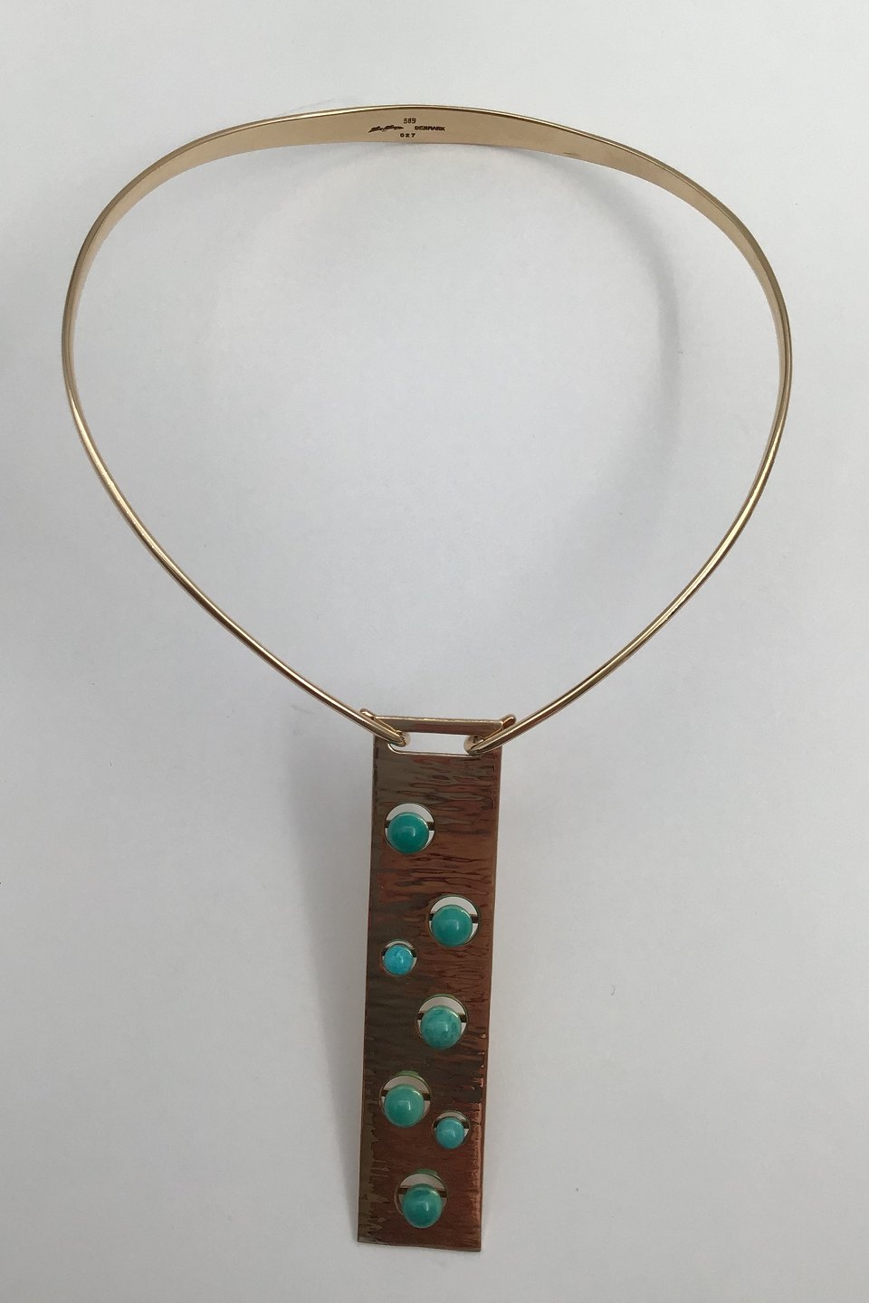 Hans Hansen 14K Gold Neckring with Turquoise Pendant No. 027 Bent Gabrielsen