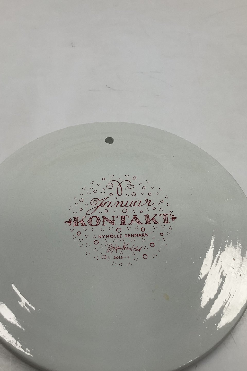 Red monthly plate in faience for January - CONTACT. Designed by Bjørn Wiinblad for Nymølle. In good condition. The factory mark on the back. Dimensions: 15 cm (5.90 inches)