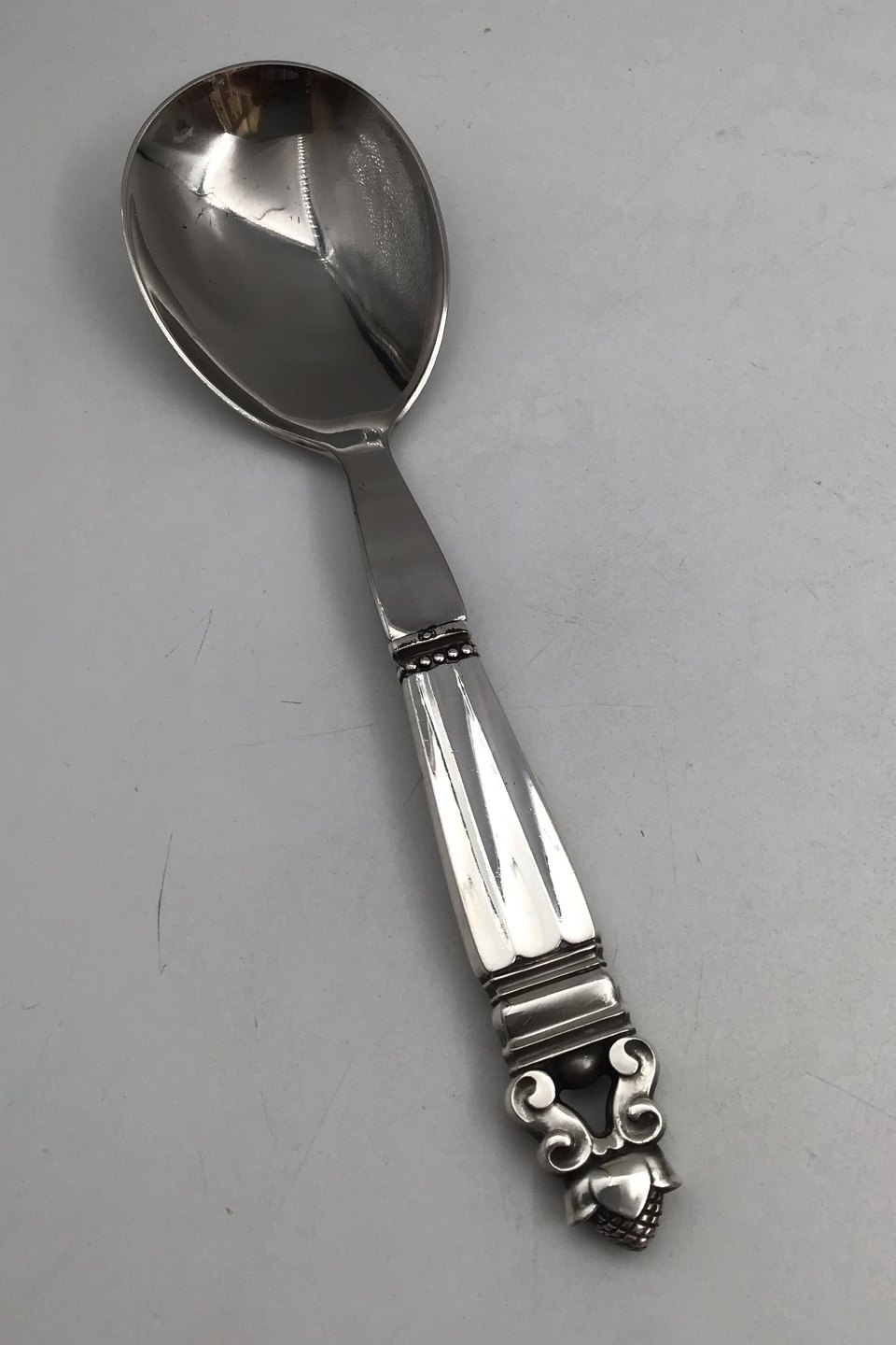 Georg Jensen Sterling Silver / Steel Acorn Serving Spoon No. 122B Measures 23.2 cm (9.13 inch)