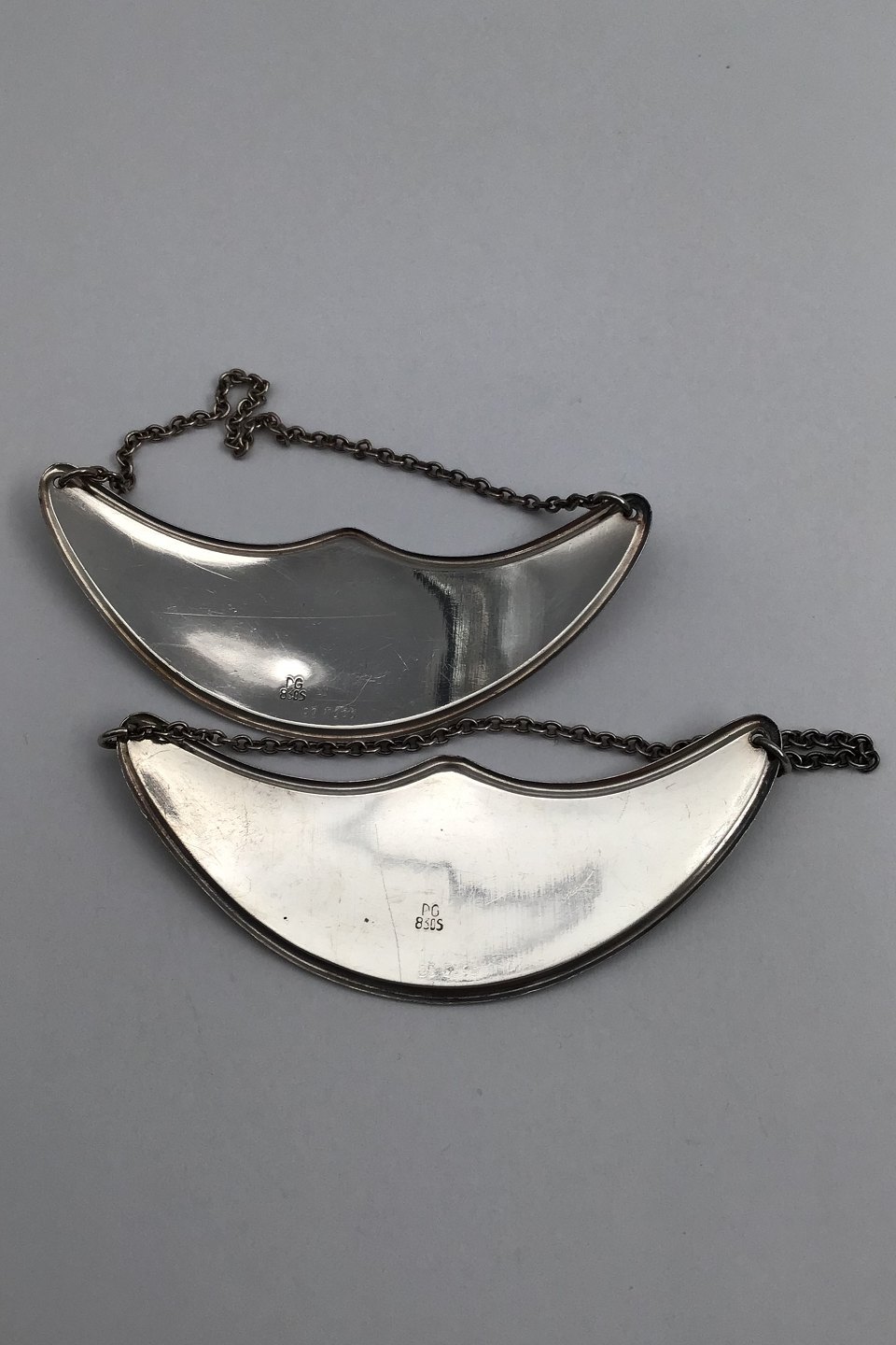 Danish Silver Decanter Tags (2) Measures 6.7 cm (2.63 inch) Børge / Børgine