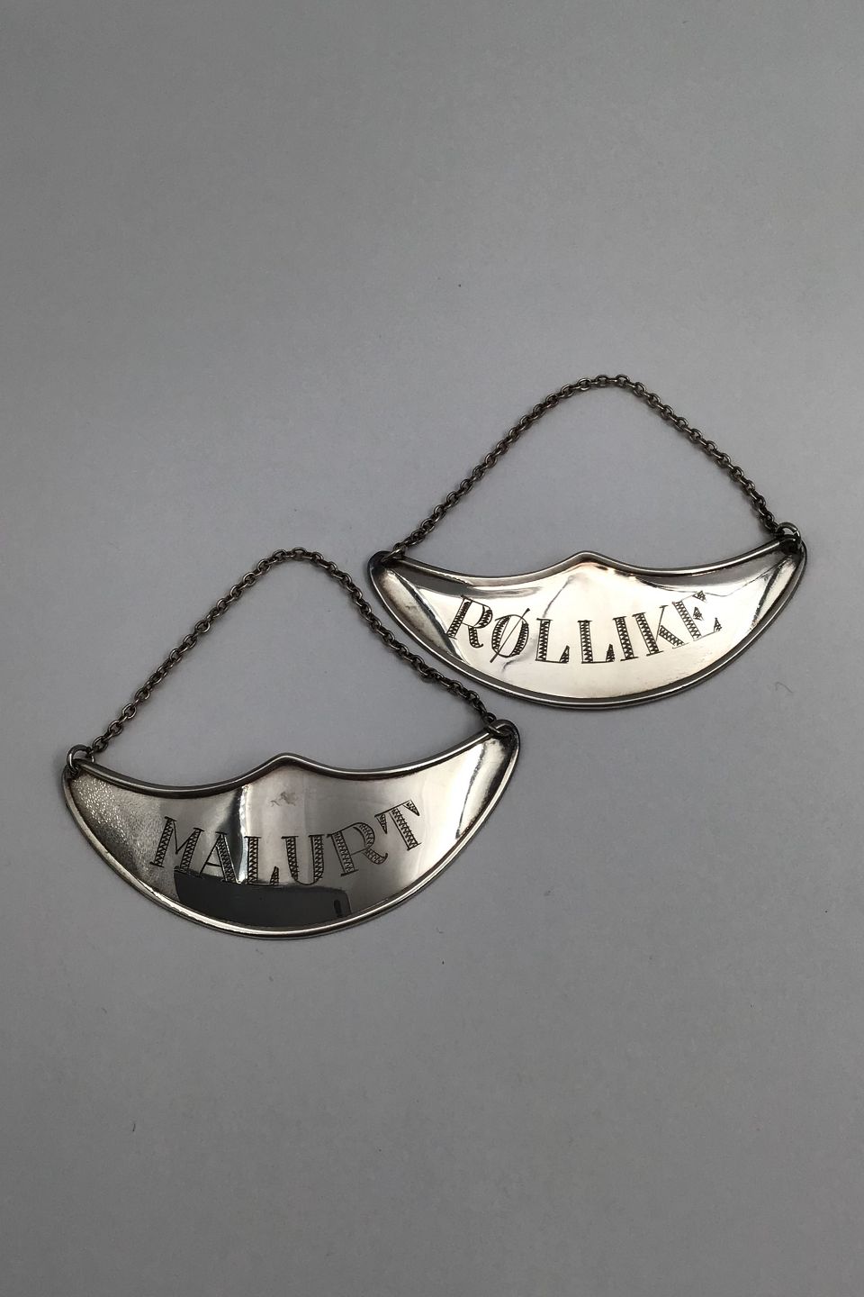 Danish Silver Decanter Tags (2) Measures 6.7 cm (2.63 inch) Malurt / Røllike (Wormwood / Yarrow)