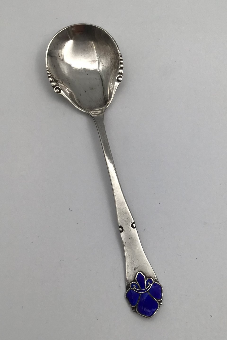 Danish Silver Fransk Lilje (French Lily) Jam Spoon (Blue Enamel) Measures 13.7 cm (5.39 inch)