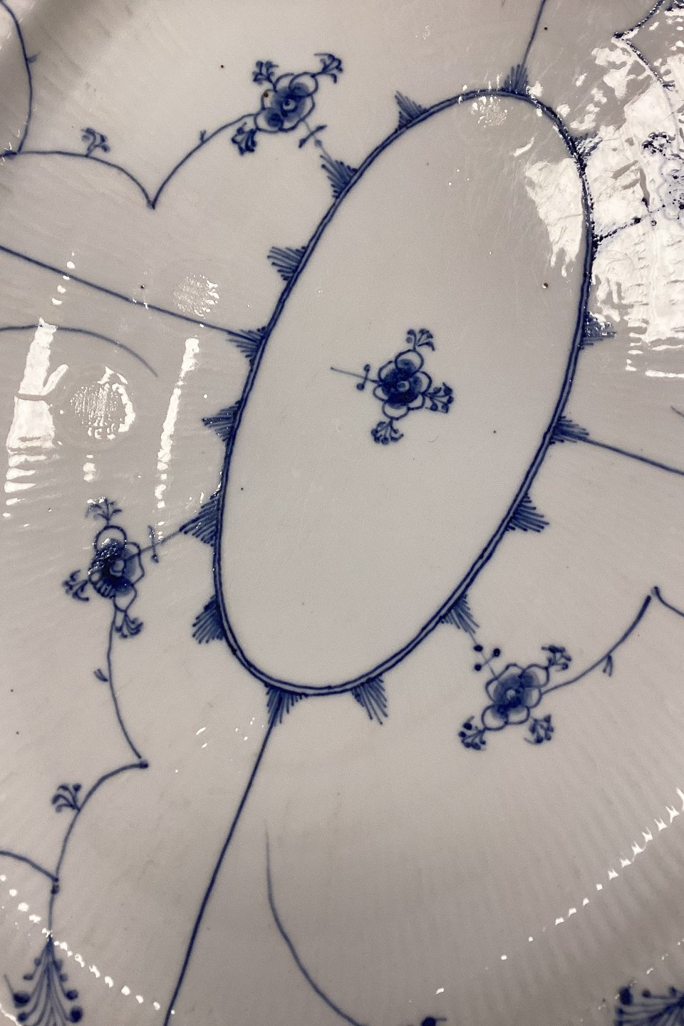 Royal Copenhagen Blue Fluted Plain Antique Dish. Placement marks and black firing specks in the glaze (see photo).