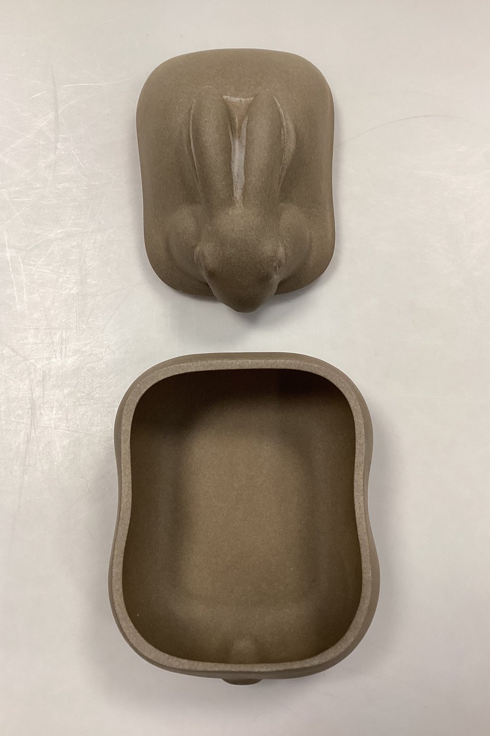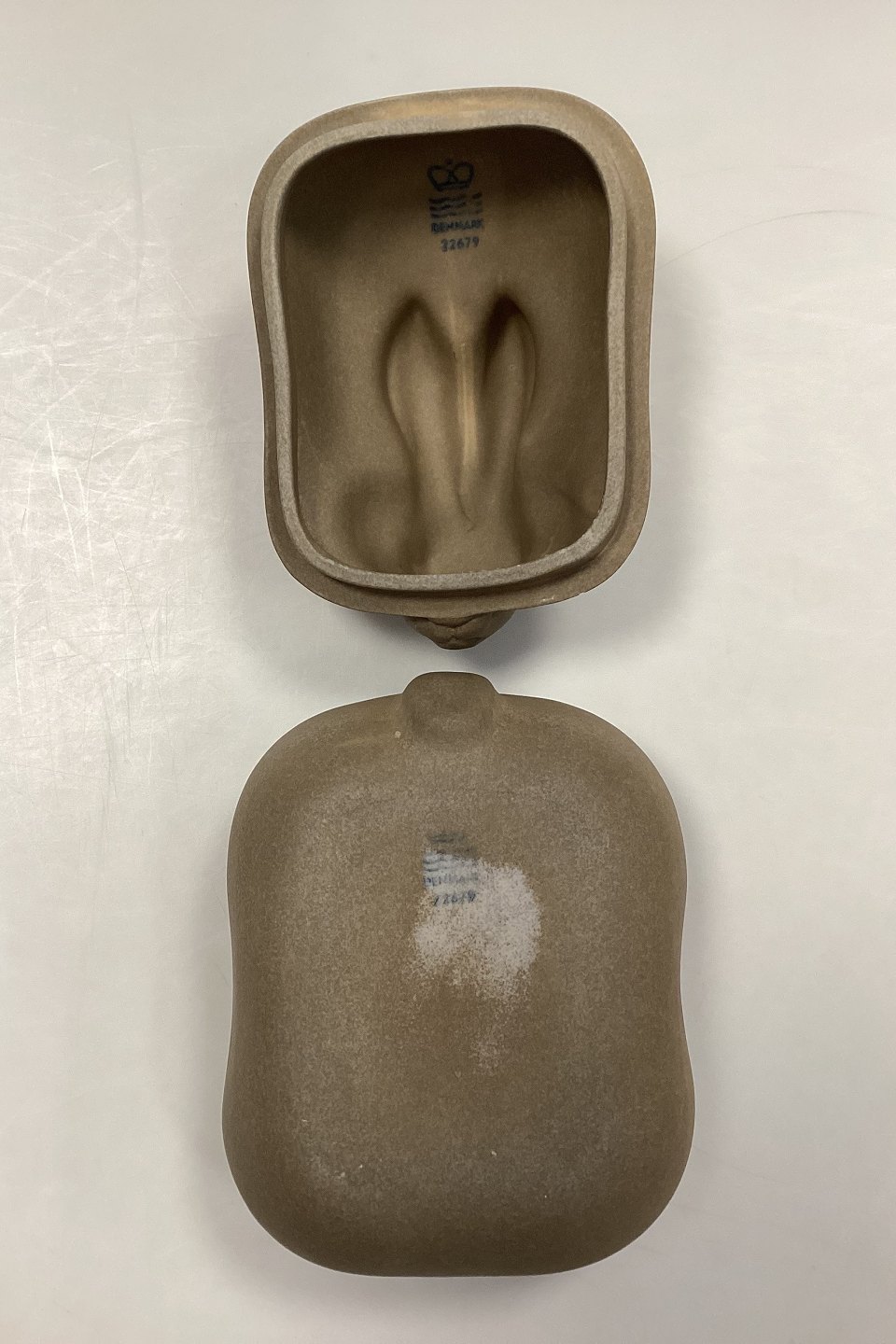 Royal Copenhagen Firepot Cocotte / Roasting Tin with Lid No. 22679. Designed like a rabbit, and therefore suitable for game. Single small chip on the lid (see photo) Designed by Grethe Meyer.