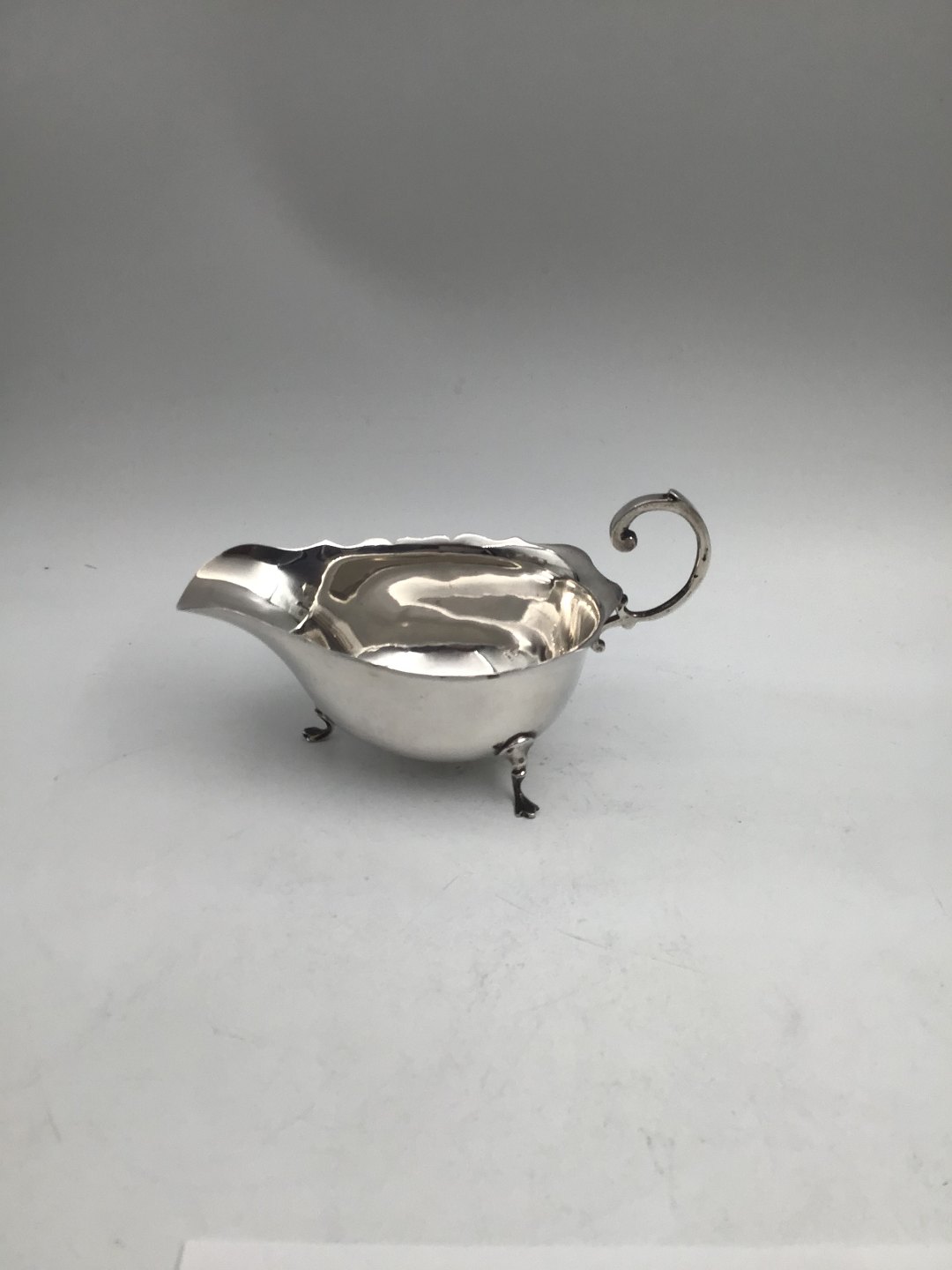 Mappin & Webb, London Sterling Silver Sauce Boat (1911) Measures 15.5 cm x 8 cm(6.10 inch x 3.14 inch) H 9 cm (3.54 inch) Weight 89.2 gr(3.15 oz)