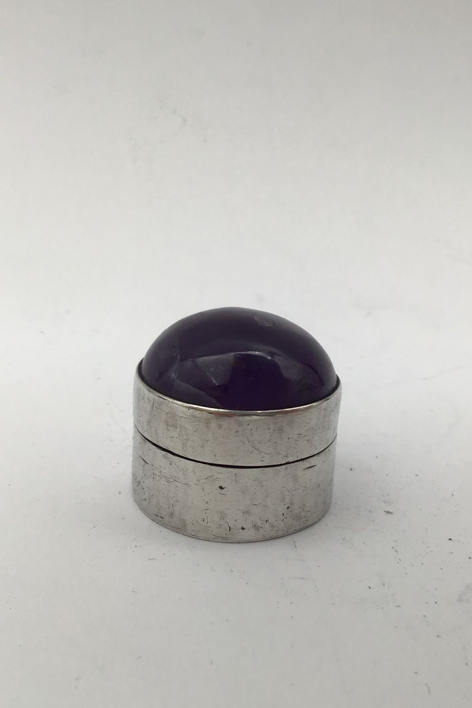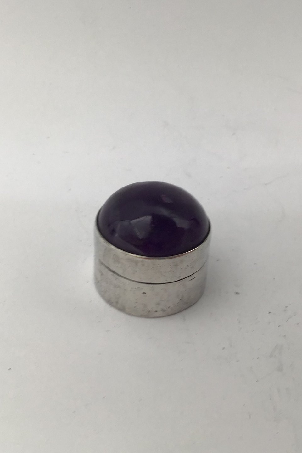 Rafmex Taxco Mexico Silver Pill Box (Amethyst) Measures Diam 2.5 cm (0.98 inch) Weight 20.7 gr (0.73 inch)