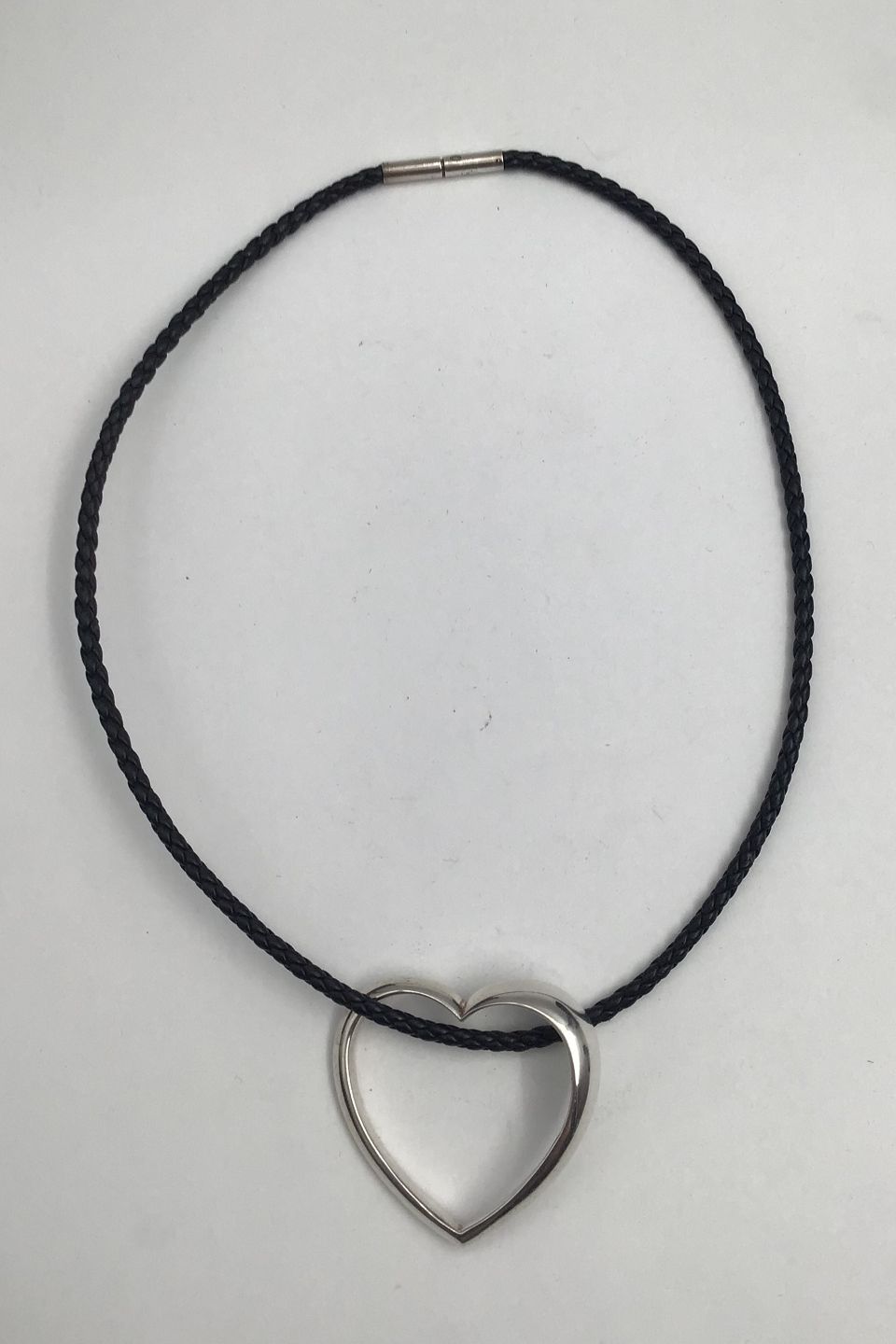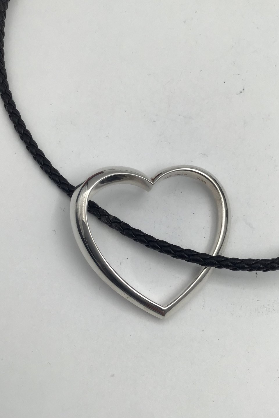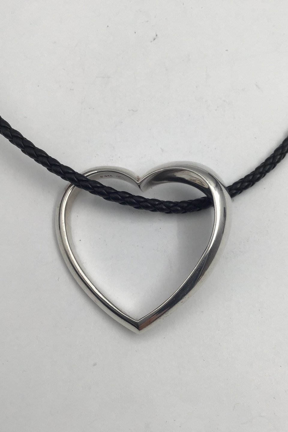 Georg Jensen Sterling Silver Heart Pendant No. 600B and braided leather string
