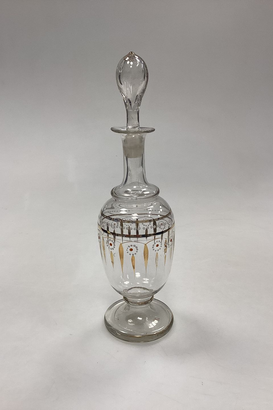 Glass Carafe with decoration in gold, white and red. Measures approx. 25.5 cm / 10.03 in.