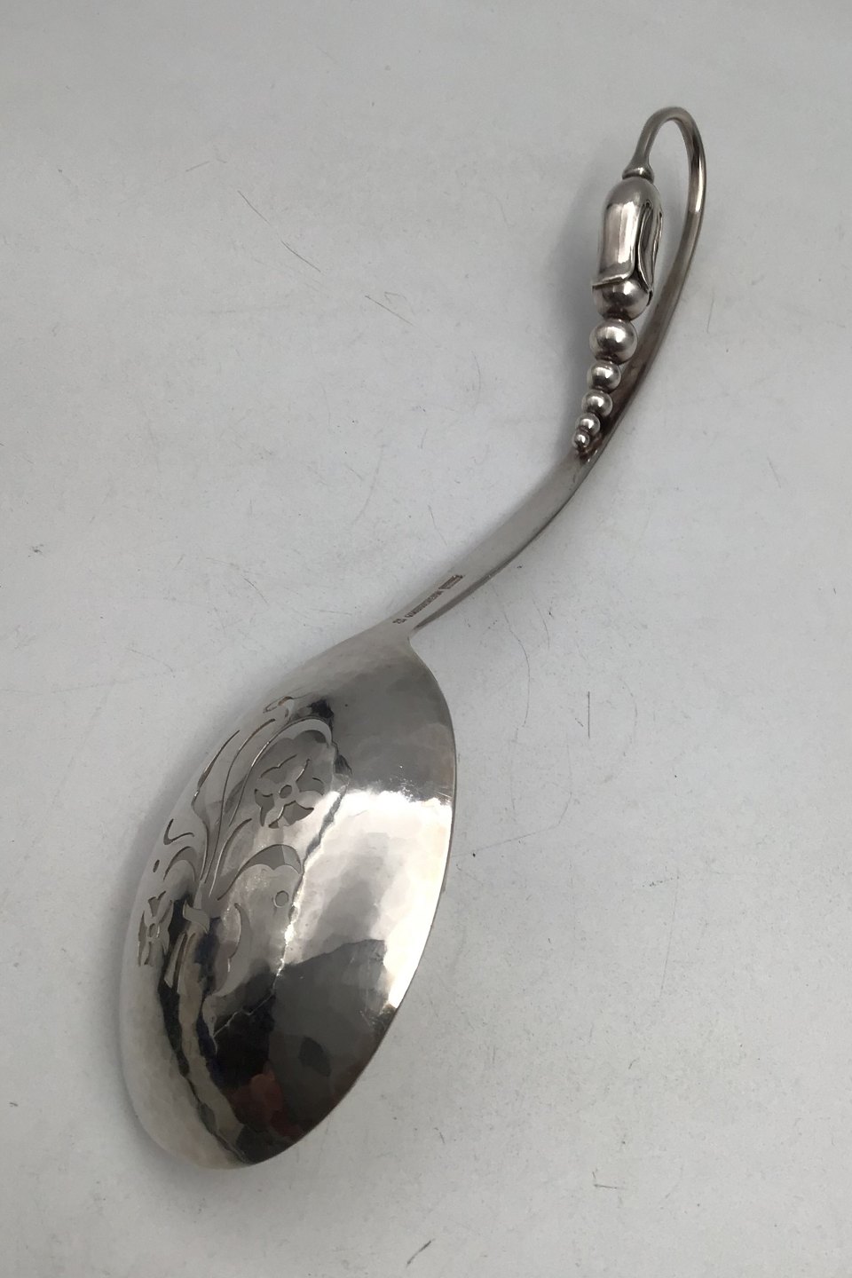 O V Mogensen Sterling Silver Ornamental Berry Spoon No. 35 Measures 24 cm (9.44 inch)