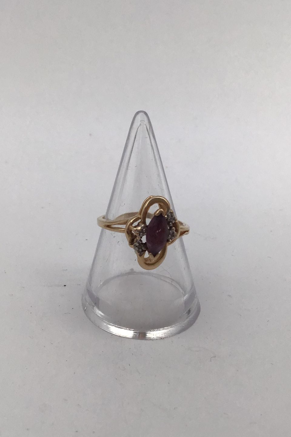 14K Gold Ring with Amethyst and Diamonds Measures Ring Size 52 (US 6) Weight 2.8 gr. (0.10 oz)