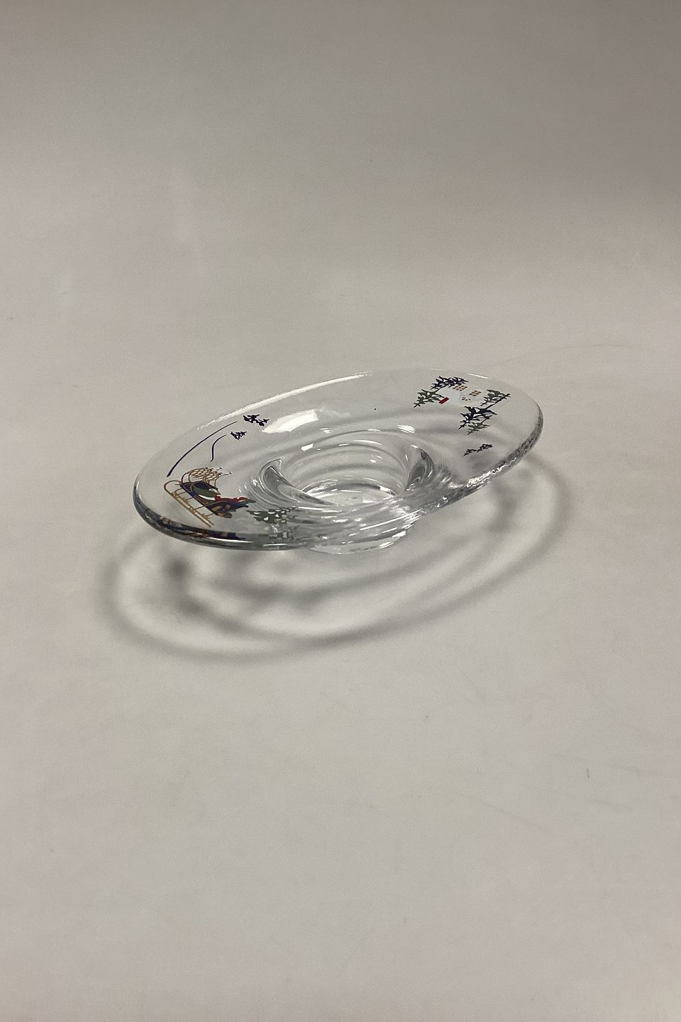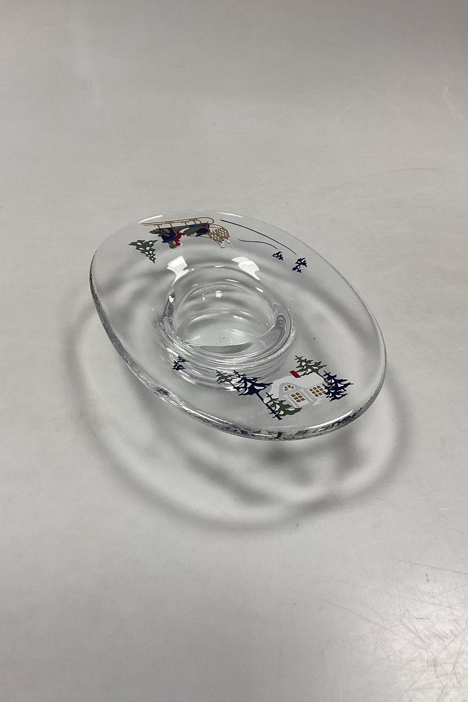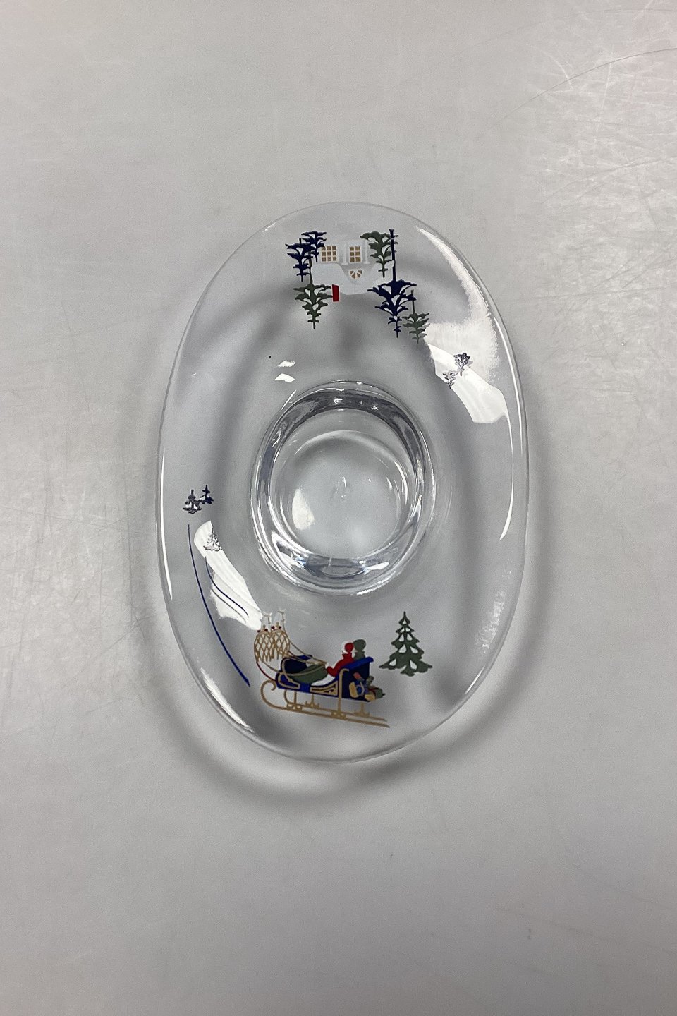 Holmegaard Golden Christmas Calendar Candlestick 1998 - Horses pulling sleigh, house and fir trees. Designed by Jette Frölich and Michael Bang.