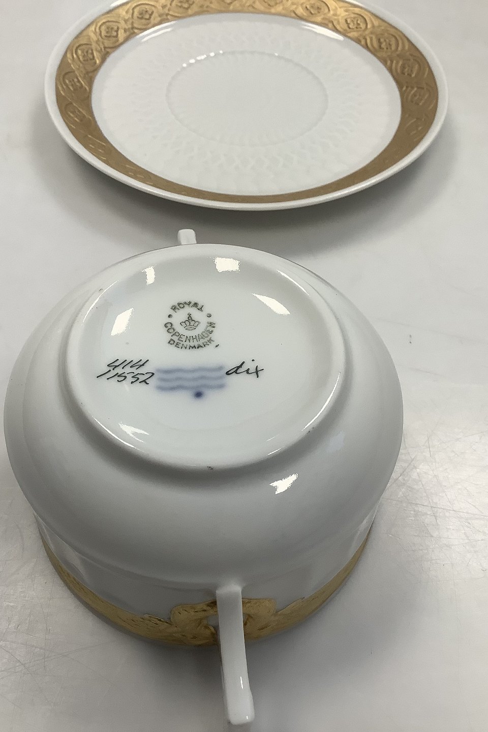 Royal Copenhagen Gold Fan Bouillon Cup with Saucer No. 11552. 22 cl. 5.5 cm H. 8.2 cm dia. 1st Quality, in great condition.