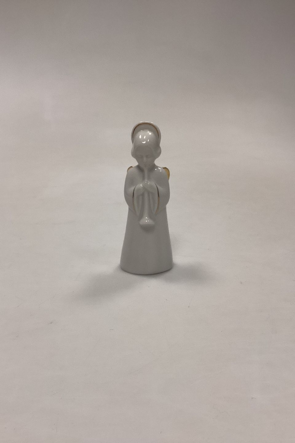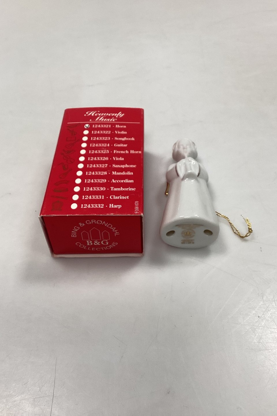 Bing and Grøndahl Figurine Heavenly Music Angel - Horn No. 1. Christmas ornament in blanc de chine porcelain with gold and string for hanging. Measures 9.5 cm / 3.74 in.