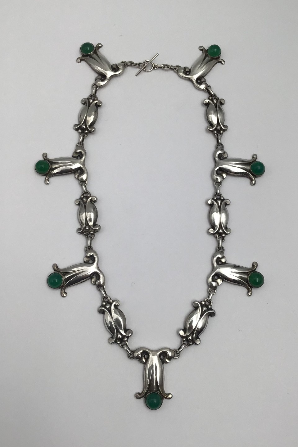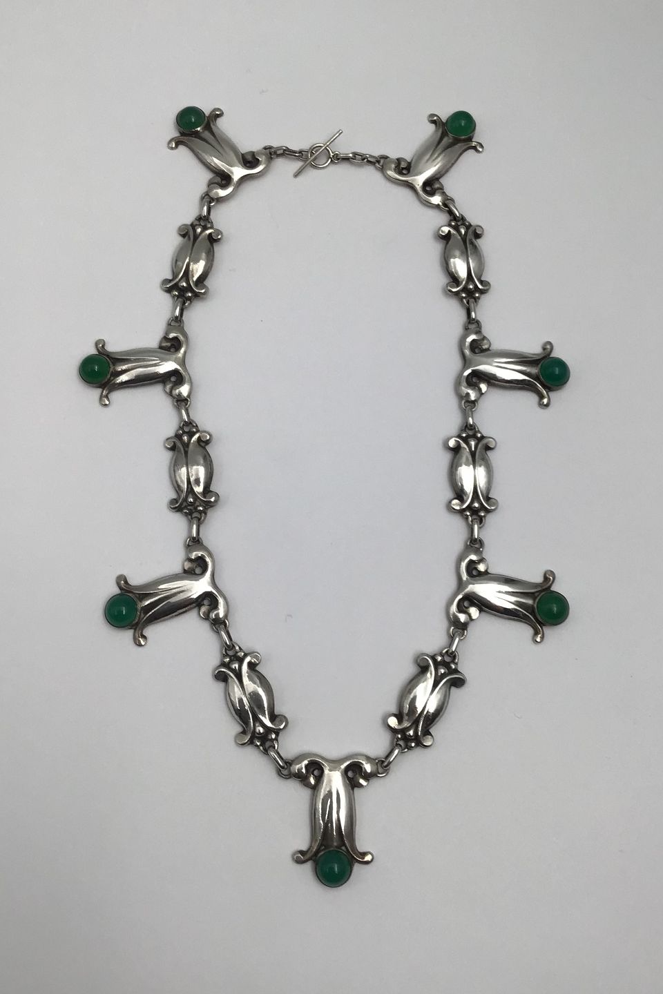 Georg Jensen 826 Silver Necklace No. 6 (Green Agate) (1909-1914)