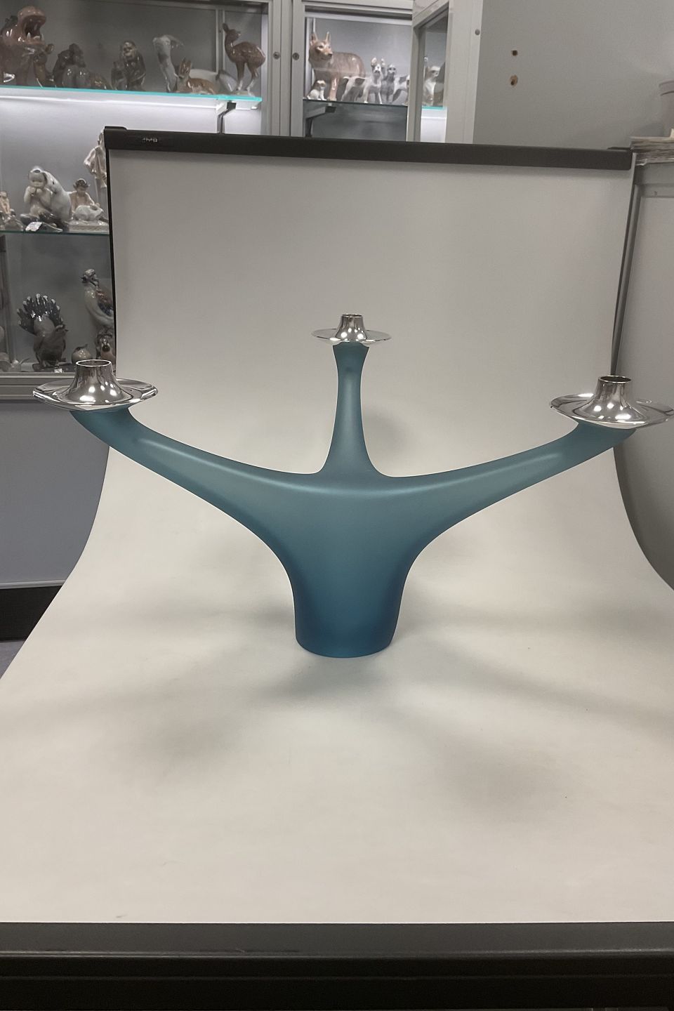 Georg Jensen / Holmegaard Sterling Silver and Glass 3-armed Candelabra by Allan Scharff