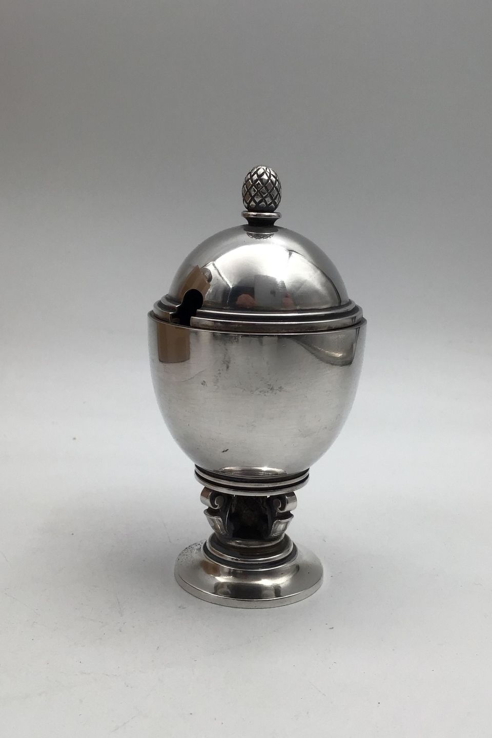 Georg Jensen Sterling Silver Acorn Egg-shaped Mustard Pot No 741 Blue Enamel Measures H 10.2 cm (4.01 inch) Diam 5.3 cm (2.08 inch) Weight 123.76 gr (4.36 oz) (Enamel chip)
