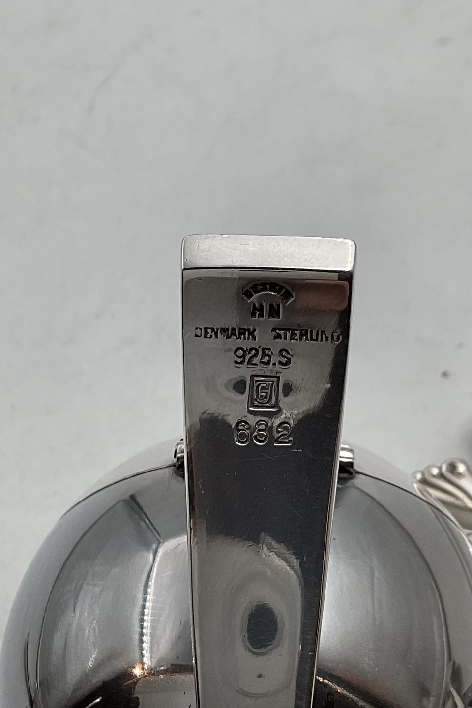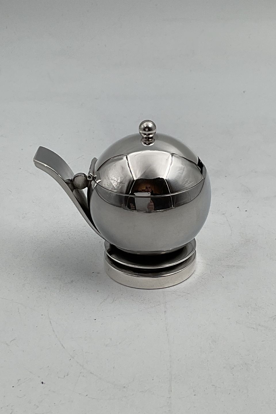 Georg Jensen Sterling Pyramid Sterling Silver mustard Jar with Green enamel No 632 Harald Nielsen. Measures 6,5cm / 2.56 inch high and is in good condition. Early hallmarks but flaw to enamel