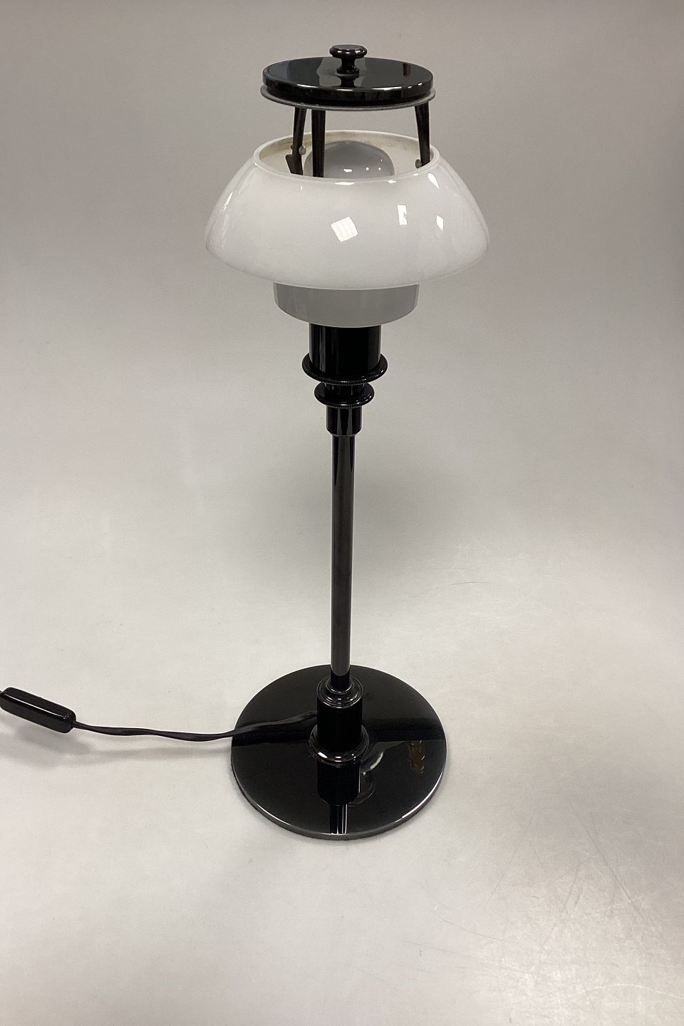PH 3/2 Table Lamp Black Metallised with 2 opal white shades. Missing the outer shade. Designed by Poul Henningsen, and produced from 2017 by Louis Poulsen. Measures H 47.2 cm / 18.58 in. The foot measures 15.5 cm. / 6.10 in. and has a few scratches, see photo.