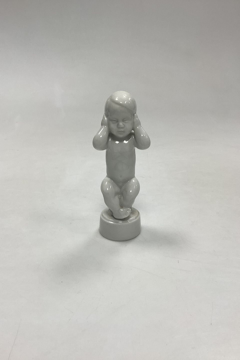 Bing and Grøndahl Blanc de Chine figurine - Do not hear No. 2496. One of the 3 virtues; do not see, do not hear, do not speak. Designed by Svend Lindhart. Measures 13.5 cm (5 5/16 in.)