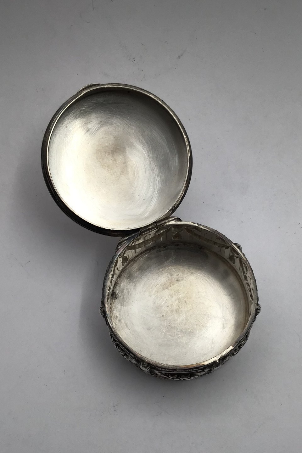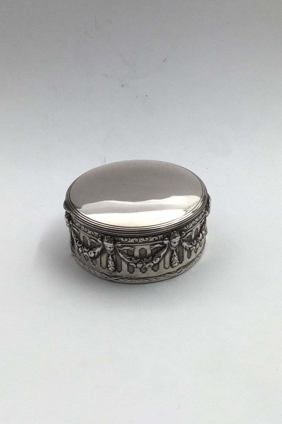 Bernhard Hertz Silver Pill Box Measures Diam 4.8 cm (1.88 oz) H 2.4 cm (0.94 oz) Weight 29.3 gr (1.03 oz)