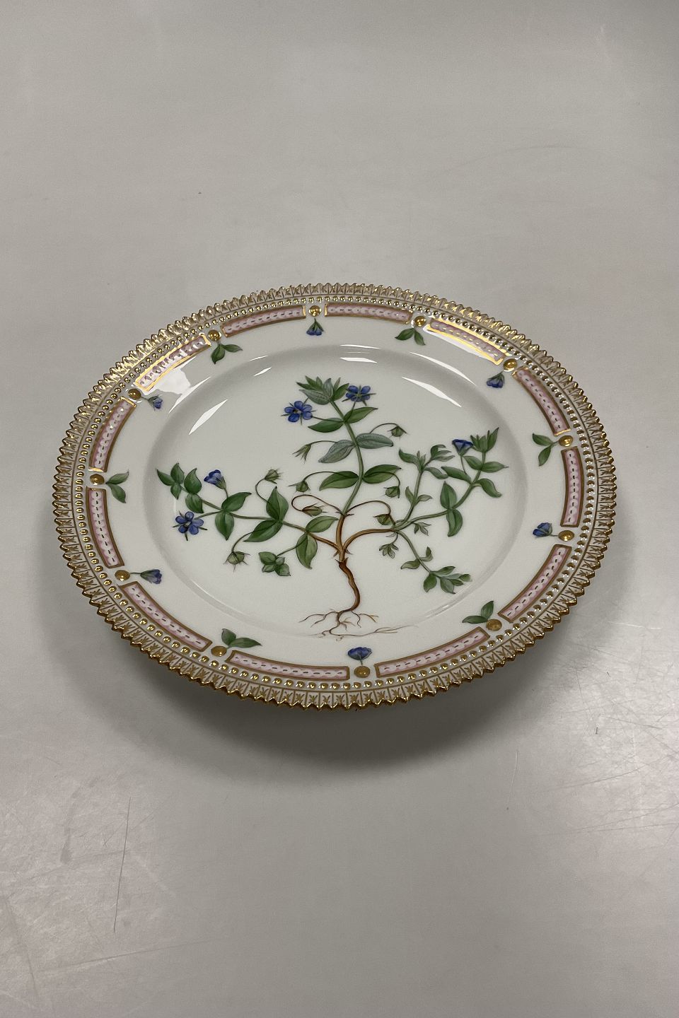 Royal Copenhagen Flora Danica Lunch Plate No 20/3550. Measures 22 cm / 8 21/32 in. 1st Quality. Latin name: Anagallis coerulea Schreb