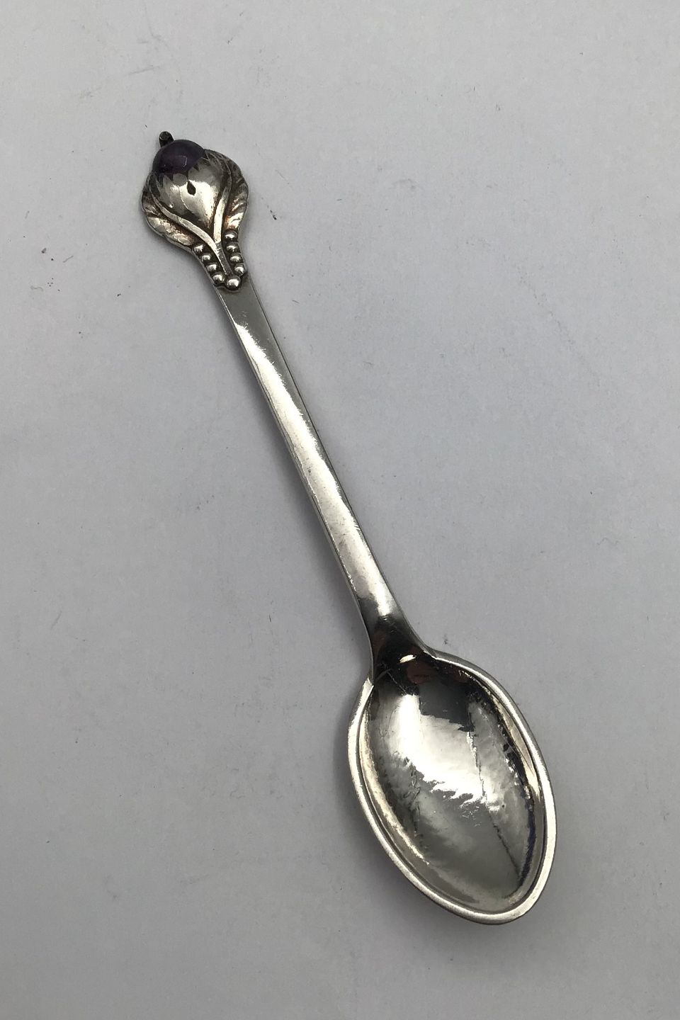 Evald Nielsen Silver No 3 Coffee Spoon (Amethyst) Measures 11.5 cm (4.52 inch)