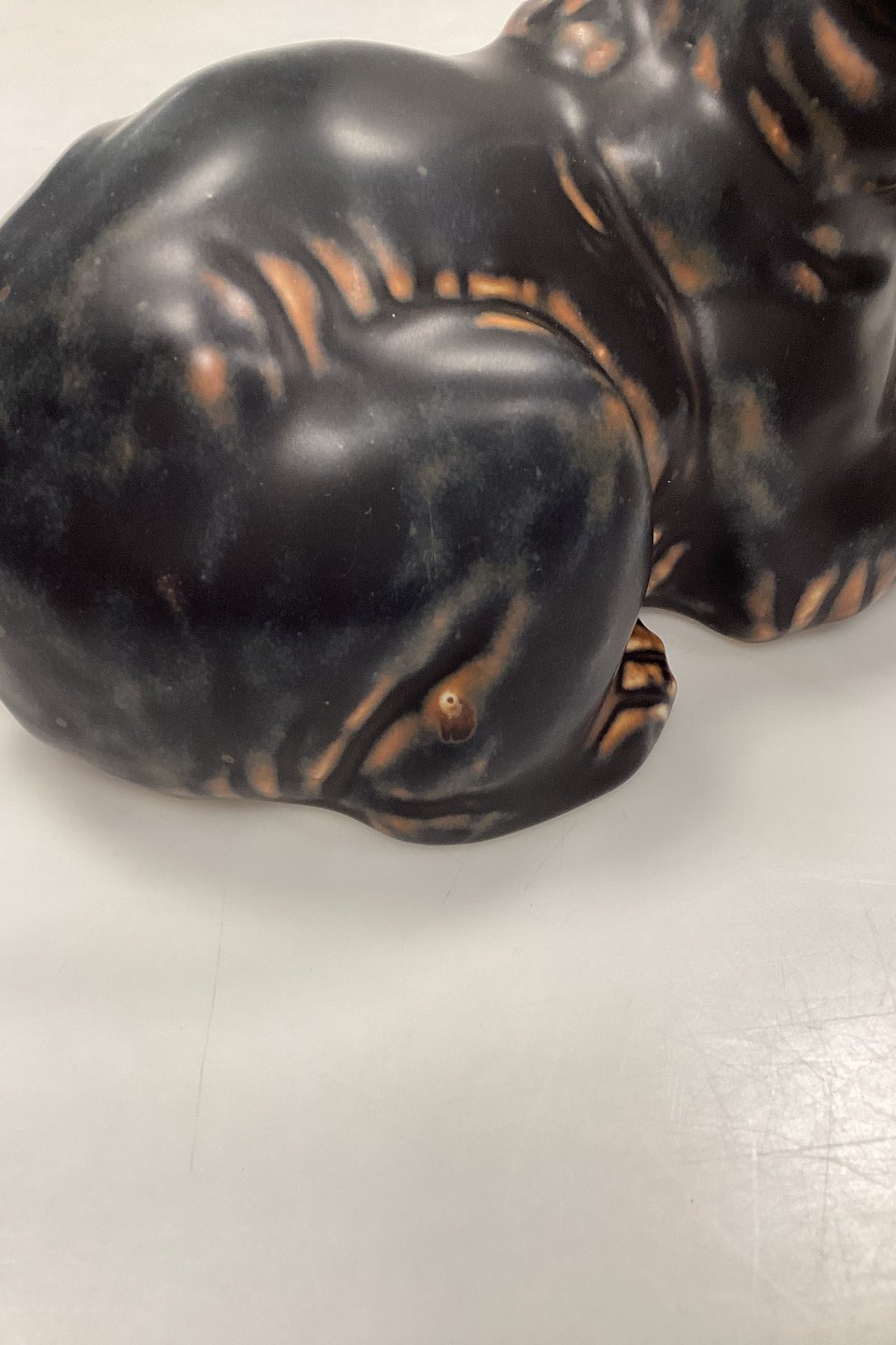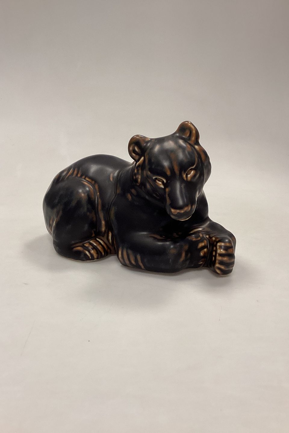 Royal Copenhagen figurine of Mother Bear No. 21520. Designed by Knud Kyhn. Dark brown with light brown shadows. 1st Quality, however with small firing defect in the glaze, see photo. Measures 22 cm x 13 cm / 8.66 in. x 5.11 in.