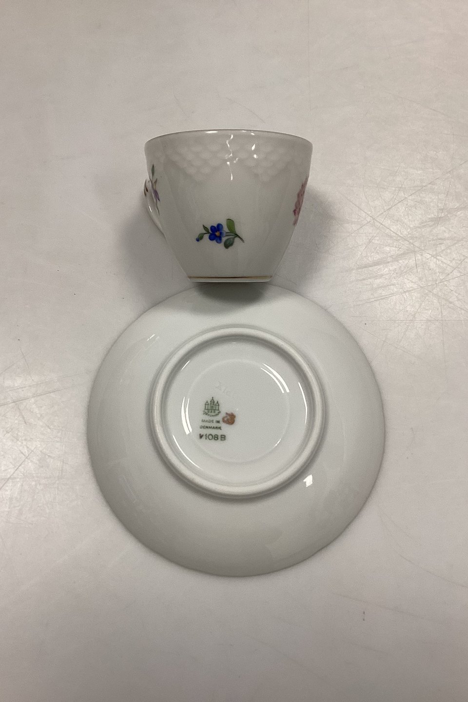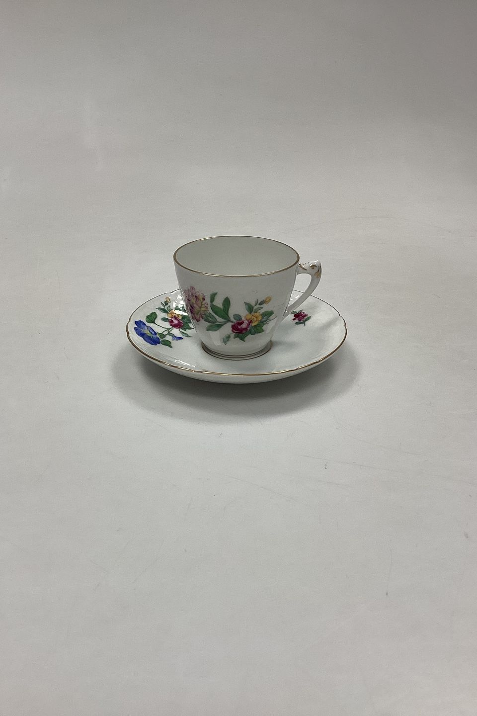 Bing and Grøndahl Saxon Flower, White Coffee Cup and Saucer No. 108B. Cup measures 5.5 cm x 7 cm / 2.16 in. x 2.75 in.