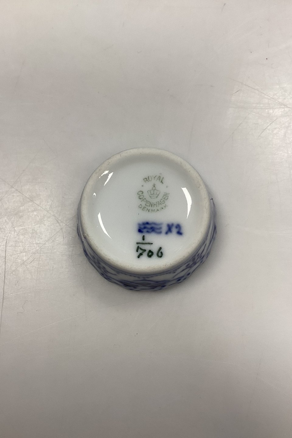 Royal Copenhagen Blue Fluted Half Lace Salt Cellar No. 706 with small chip on the edge, see photo. Measures 4.4 cm / 1.73 in.