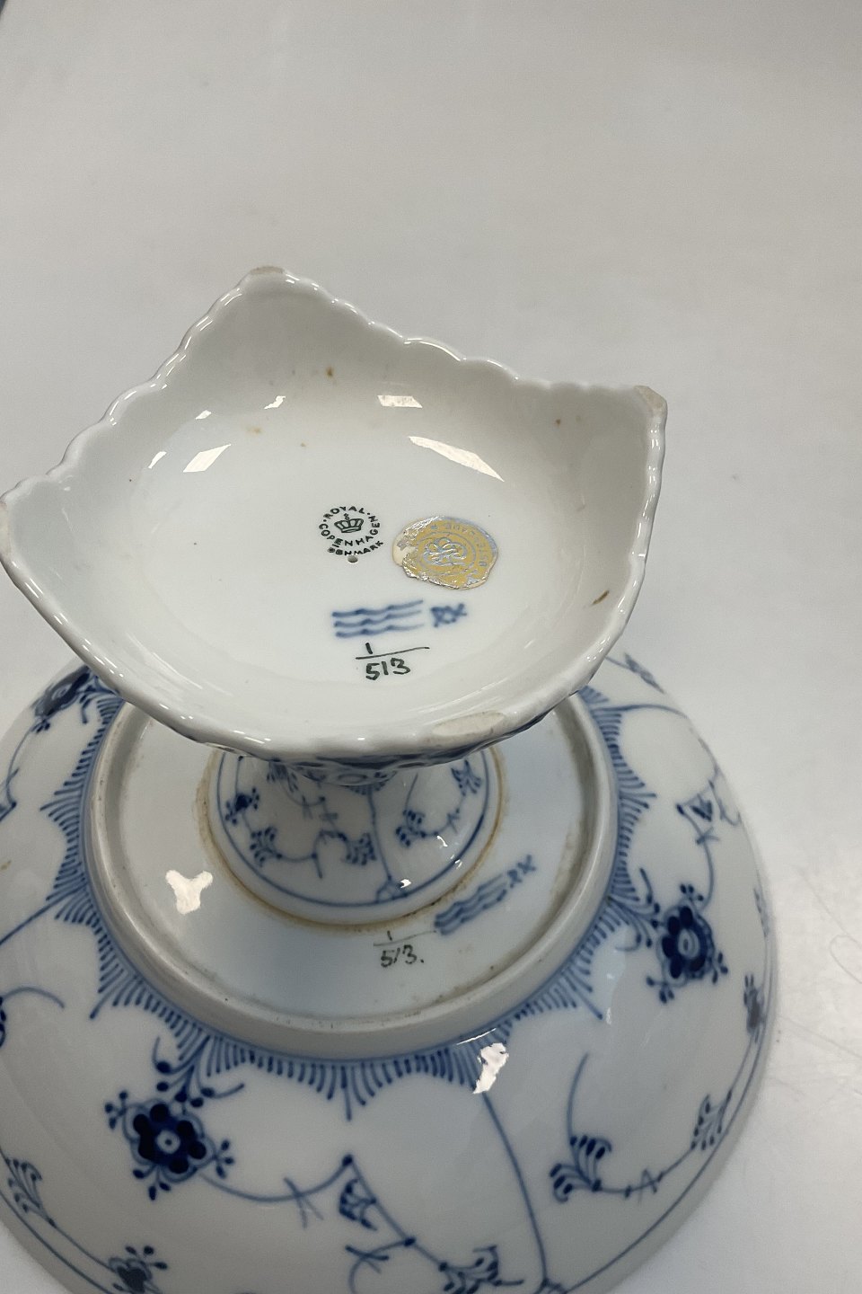 Royal Copenhagen Blue Fluted Halflace bowl on high foot No.513