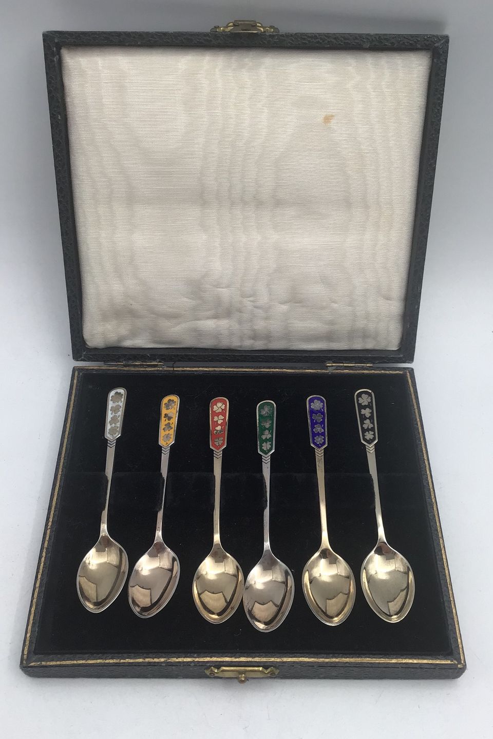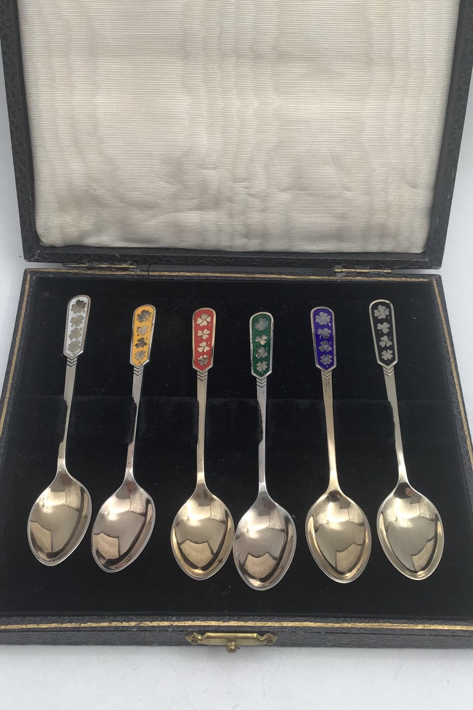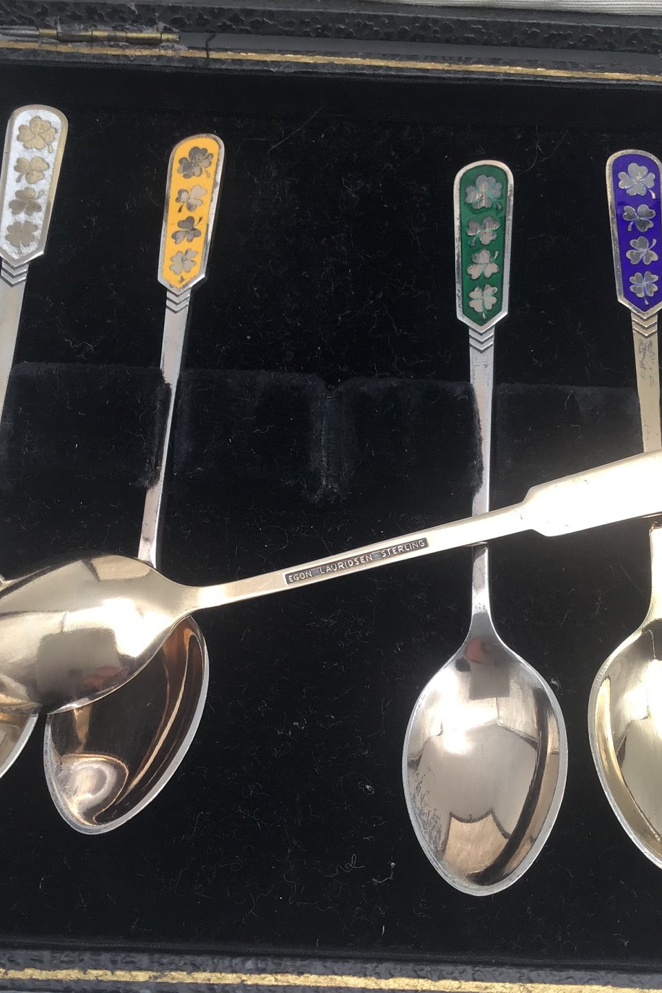 Egon Lauridsen (ELa) Sterling Silver/Enamel Mocha Spoons Gilt(6) Measures 10 cm (3.93 inch) (Box)