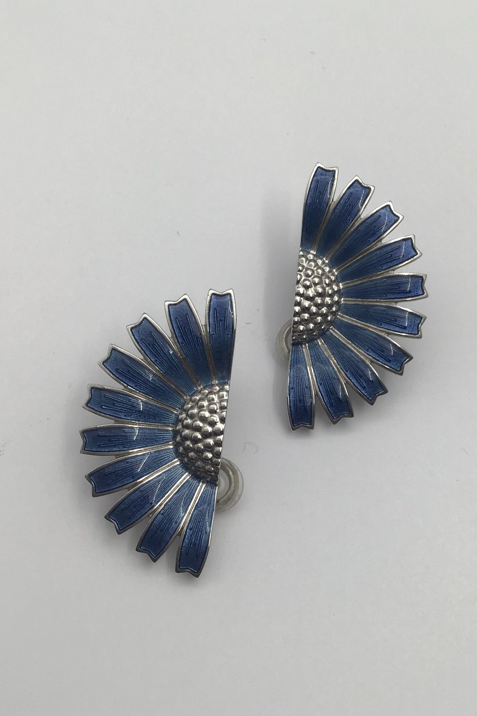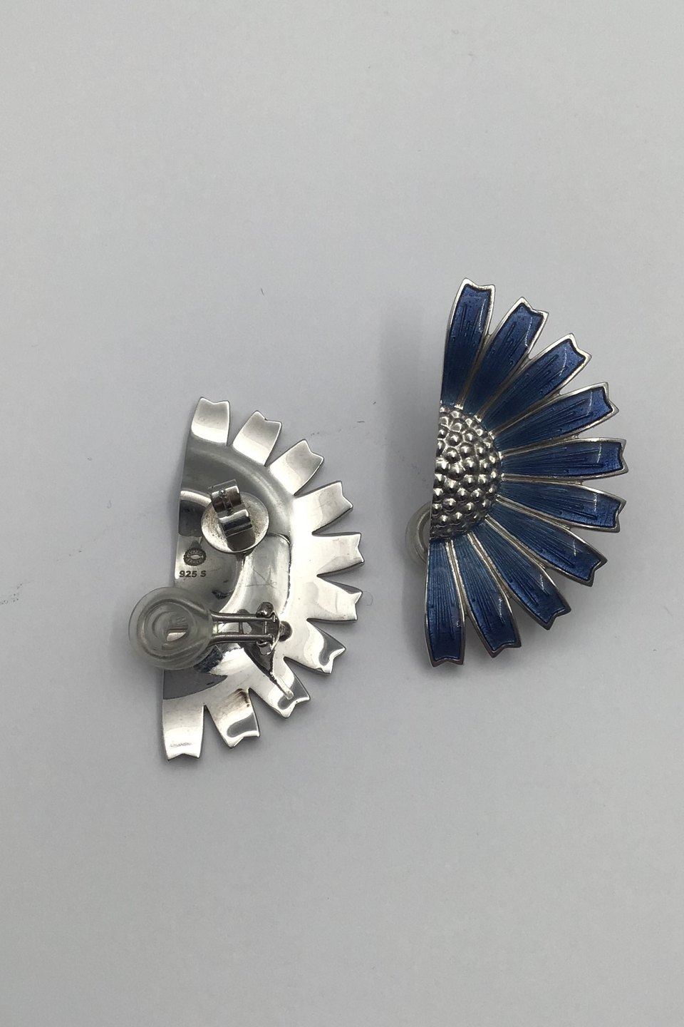 Georg Jensen Sterling Silver Daisy Earrings (Blue) Measures 4.5 cm x 2.2 cm (1.77 inch x 0.86 inch) Combined Weight 20.51 gr (0.72 oz)