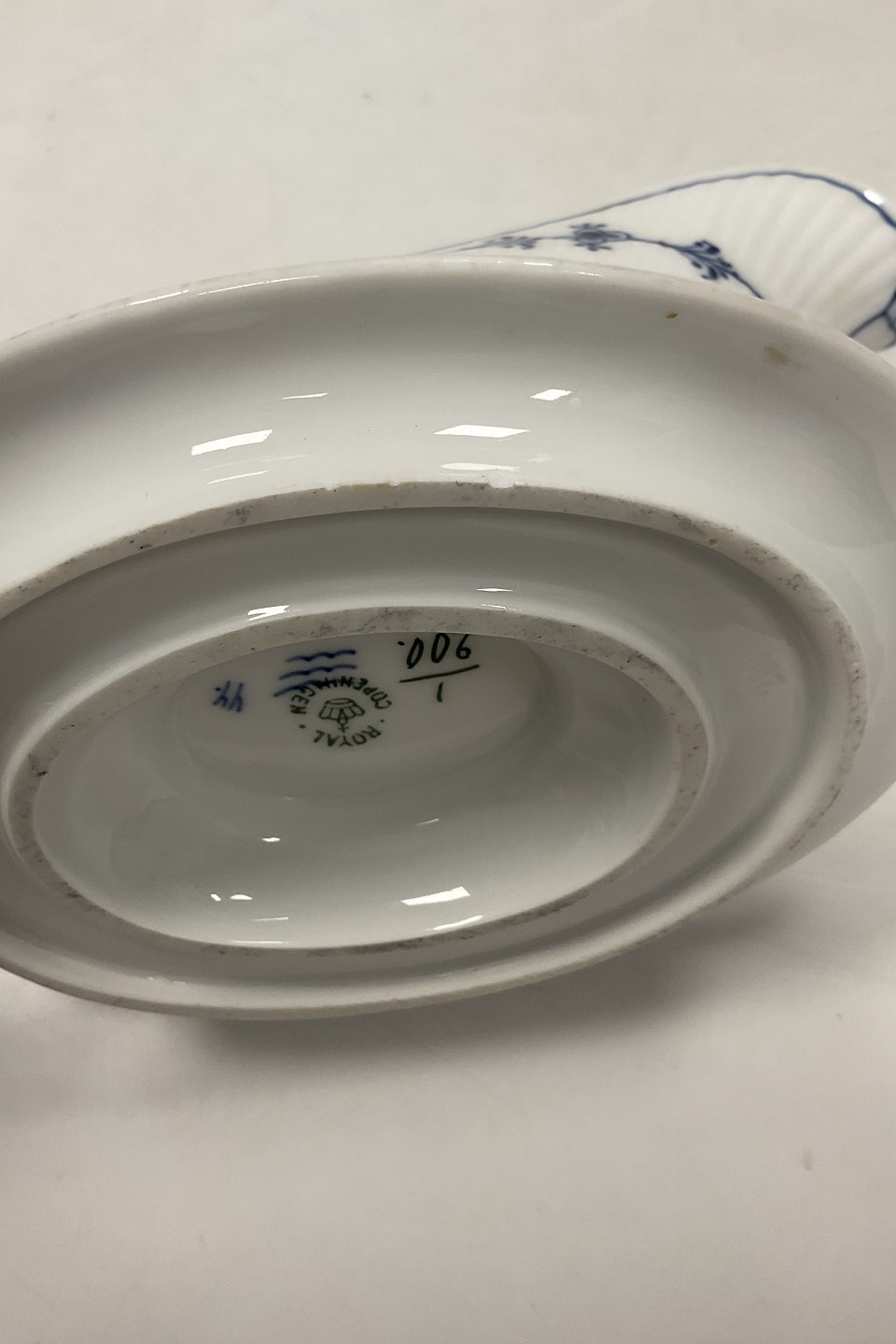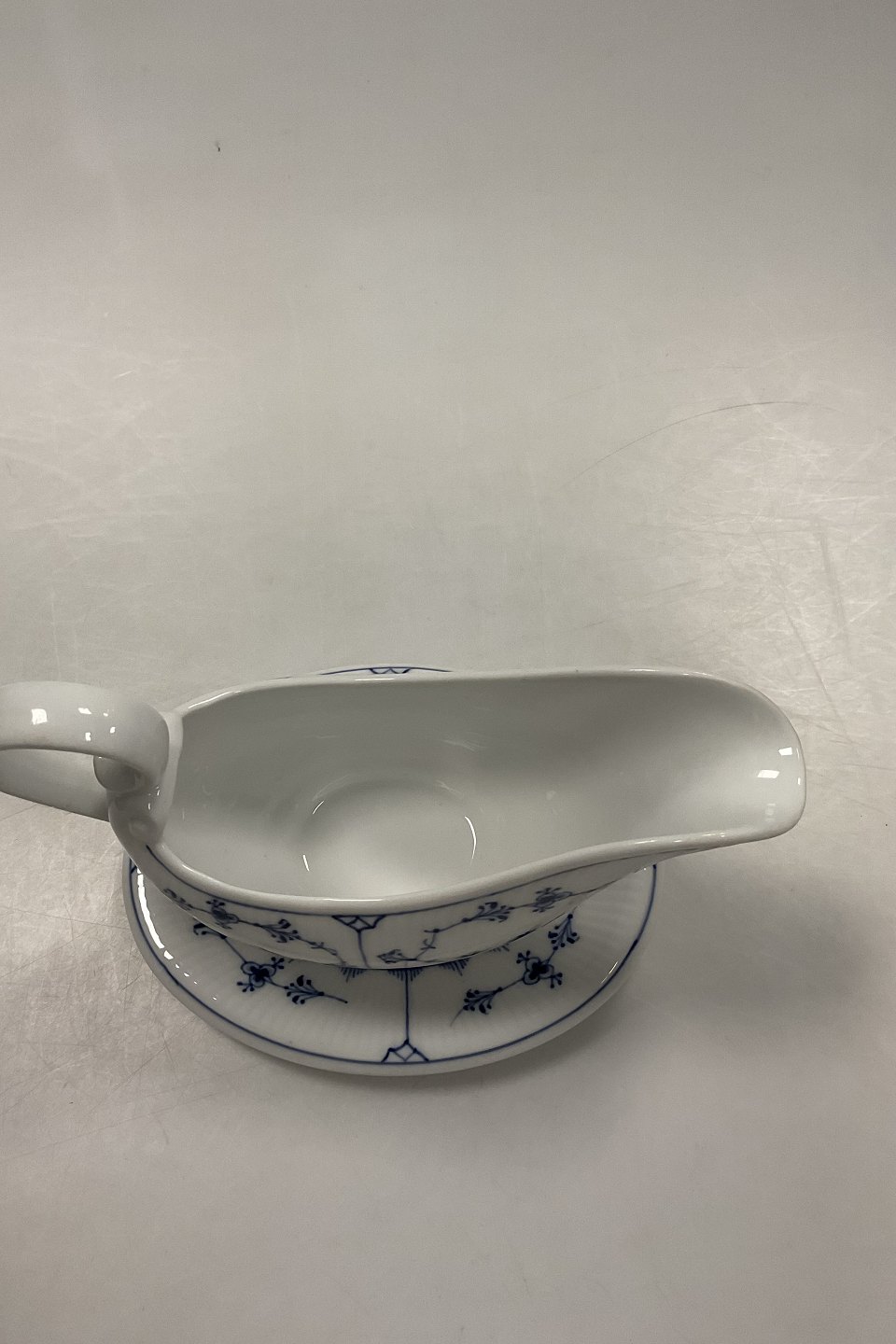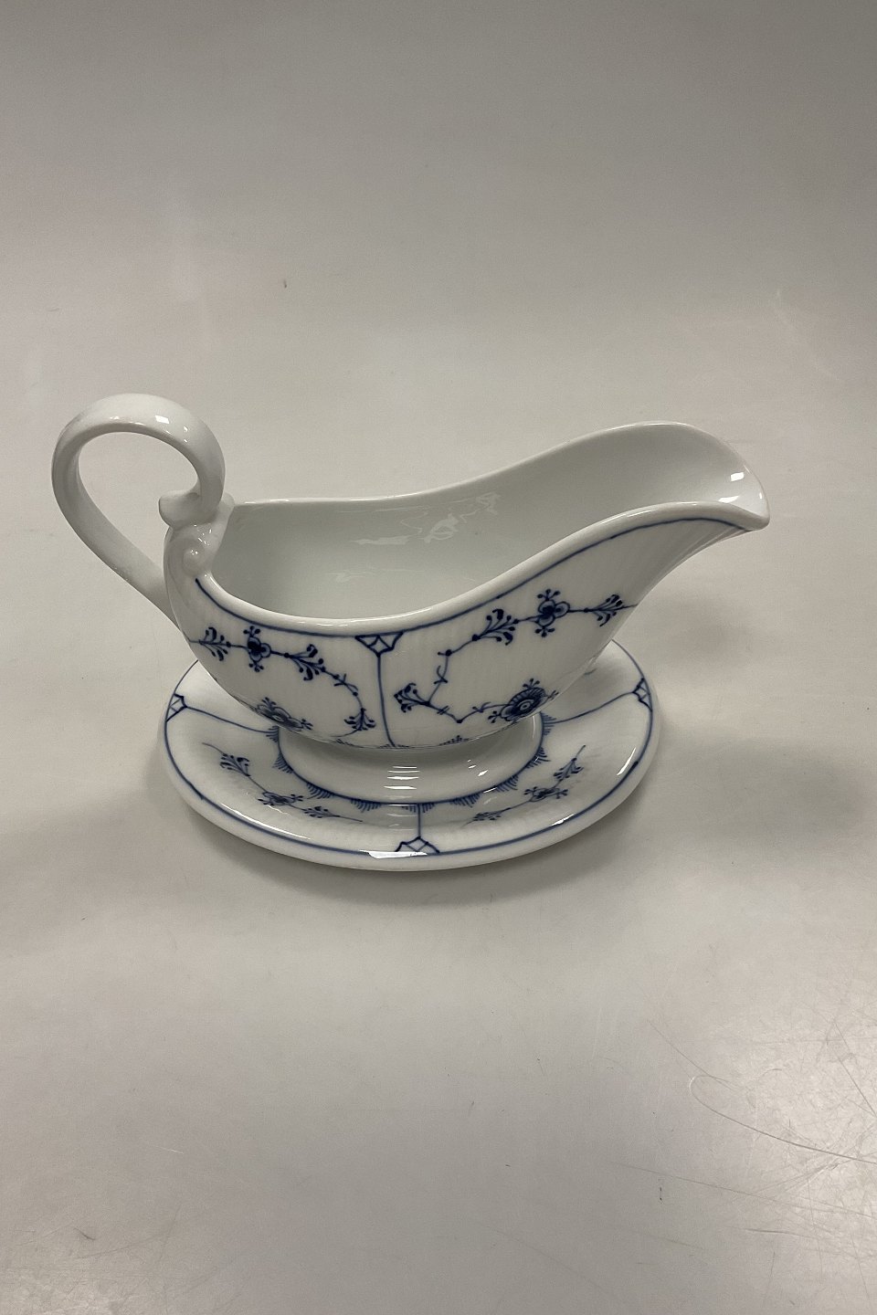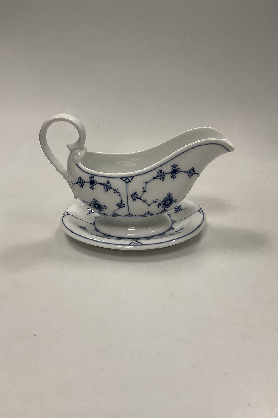 Royal Copenhagen Blue Fluted Plain Saucebowl with handle and saucer No 200. Measures 20 cm x 14 cm / 7 7/8 in. x 5 33/64 in.