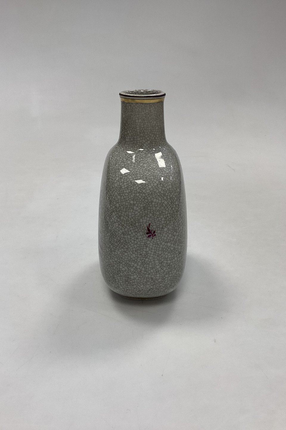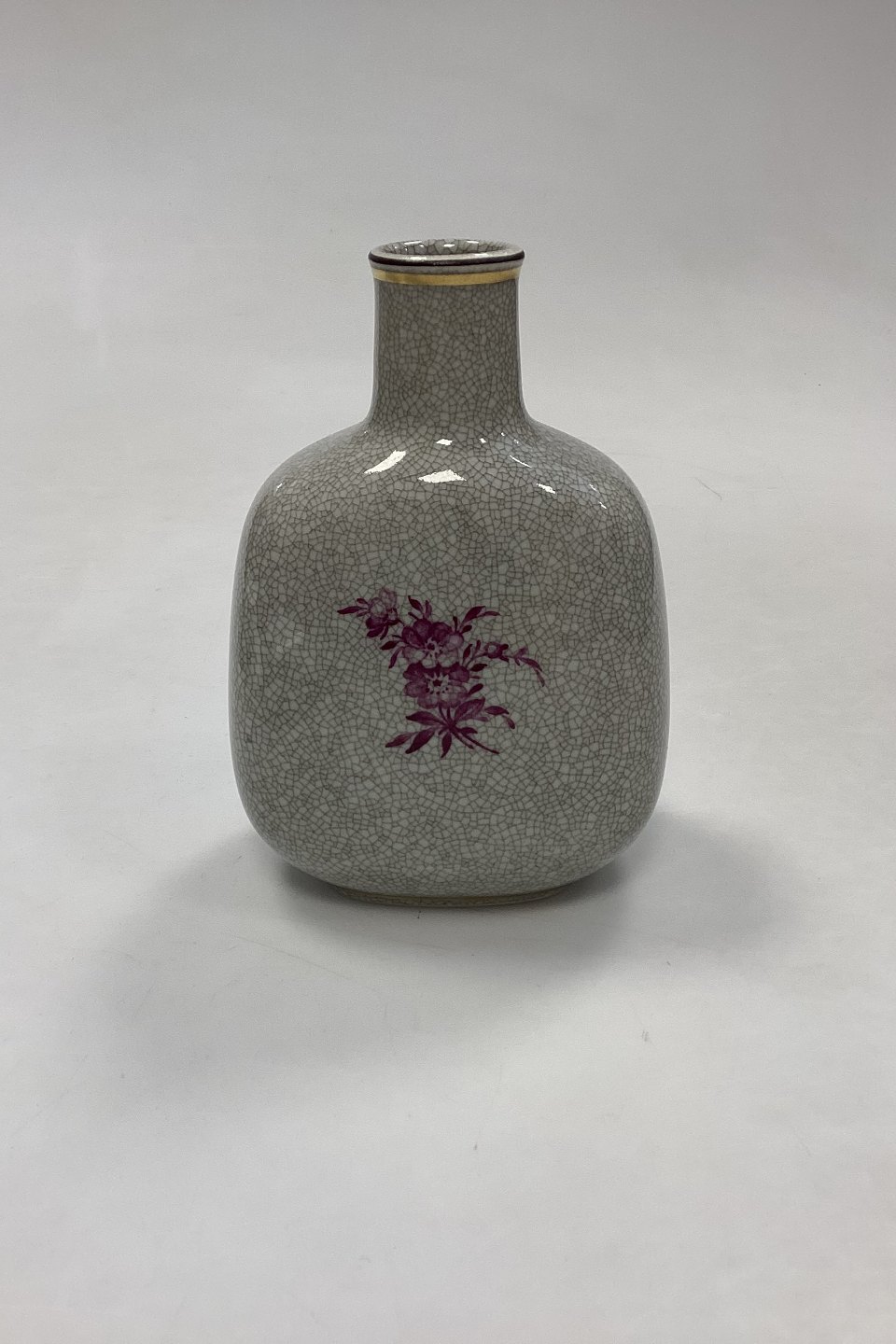 Royal Copenhagen Craquelé Vase Privately Painted. Motif in fuchsia of landscape with castle and flowers. Signed SHJ. Measures 14.5 cm / 5.70 in.