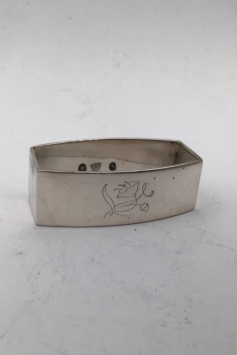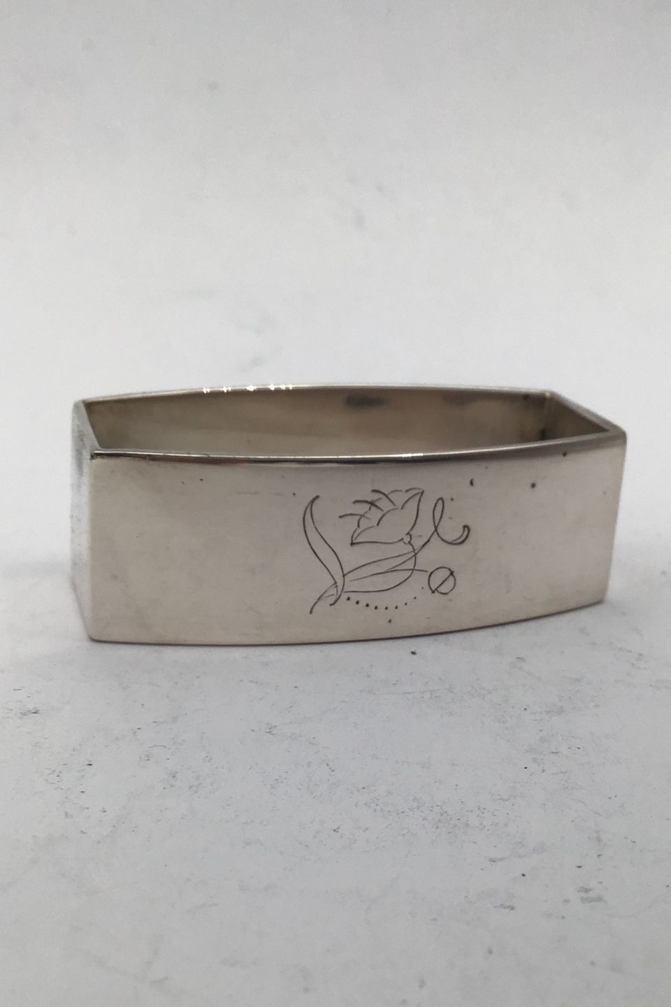 Danish Silver Art Deco Napkin Ring (1932) Measures 5 cm x 2.7 cm (1.96 inch x 1.06 inch) Width 1.7 cm (0.67 inch) Weight 30.34 gr (1.07 oz)