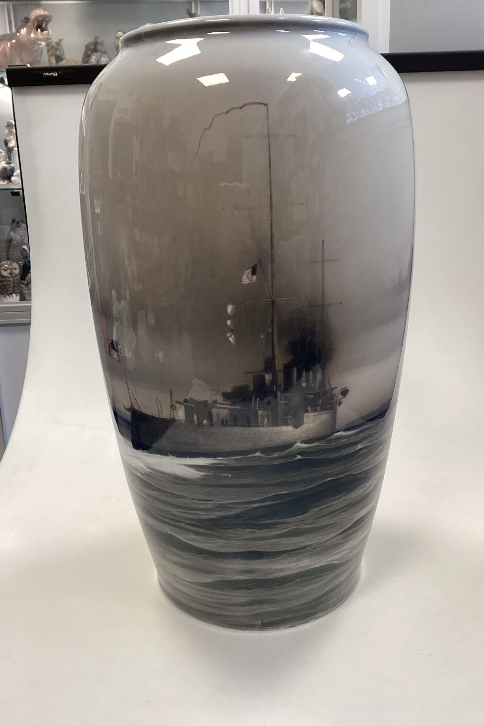 Bing og Grøndahl Harry Kluge Unika Vase with motif of US Battleship Memphis